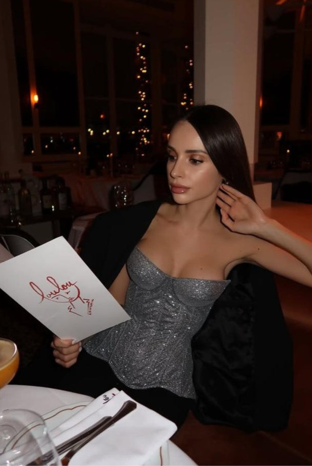 - Meet the Paradise Cupped Corset and Hand-Embroidered Mini Skirt from Fancy Club - the ultimate fun and flirty duo!
