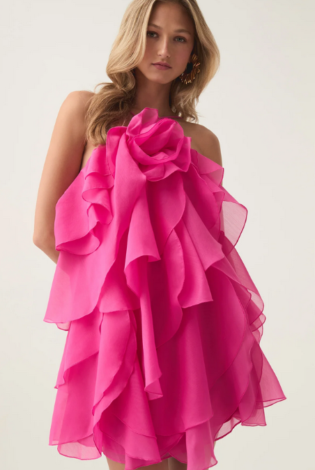 - Featuring a figure-flattering corset with contour cups and a stunning mini skirt adorned with 3D hand-embroidered florals, this two-piece is a showstopper.