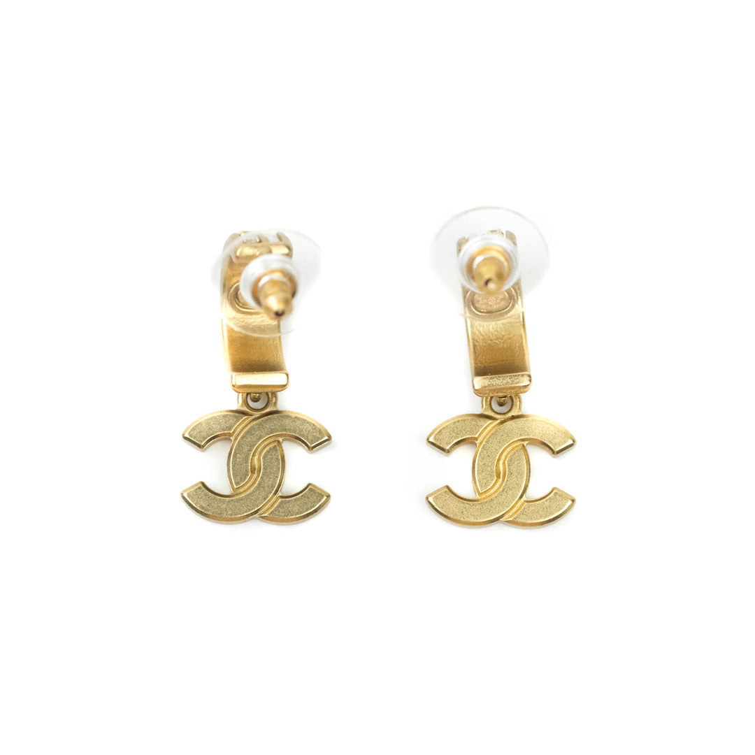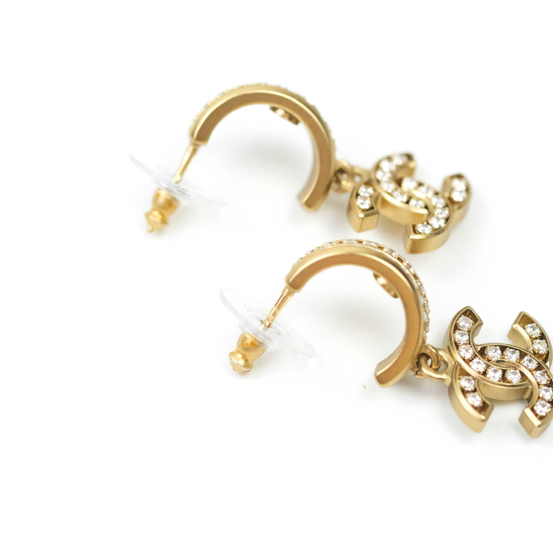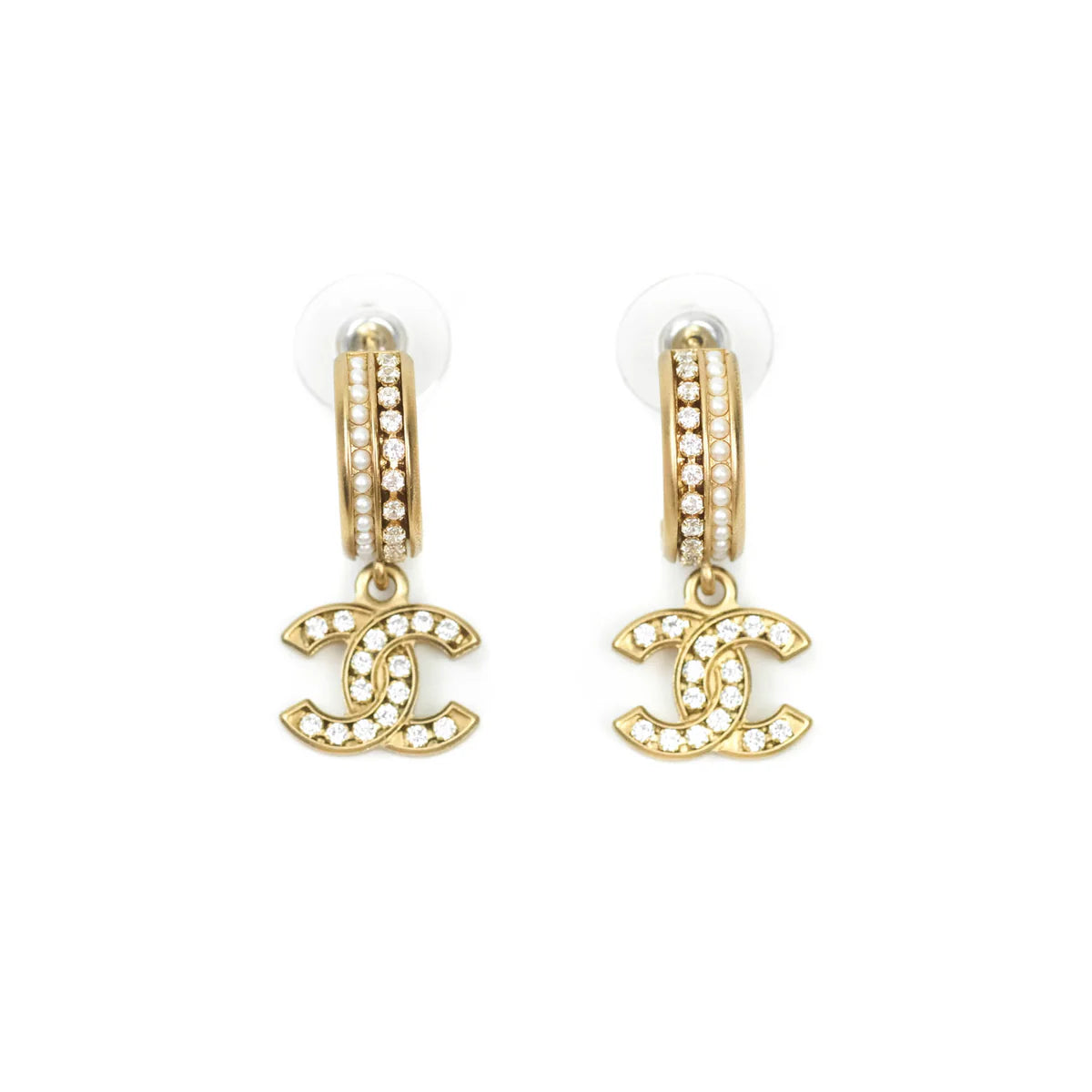 Chanel CC Crystal Pearl Hoop Earrings Gold Tone 21C