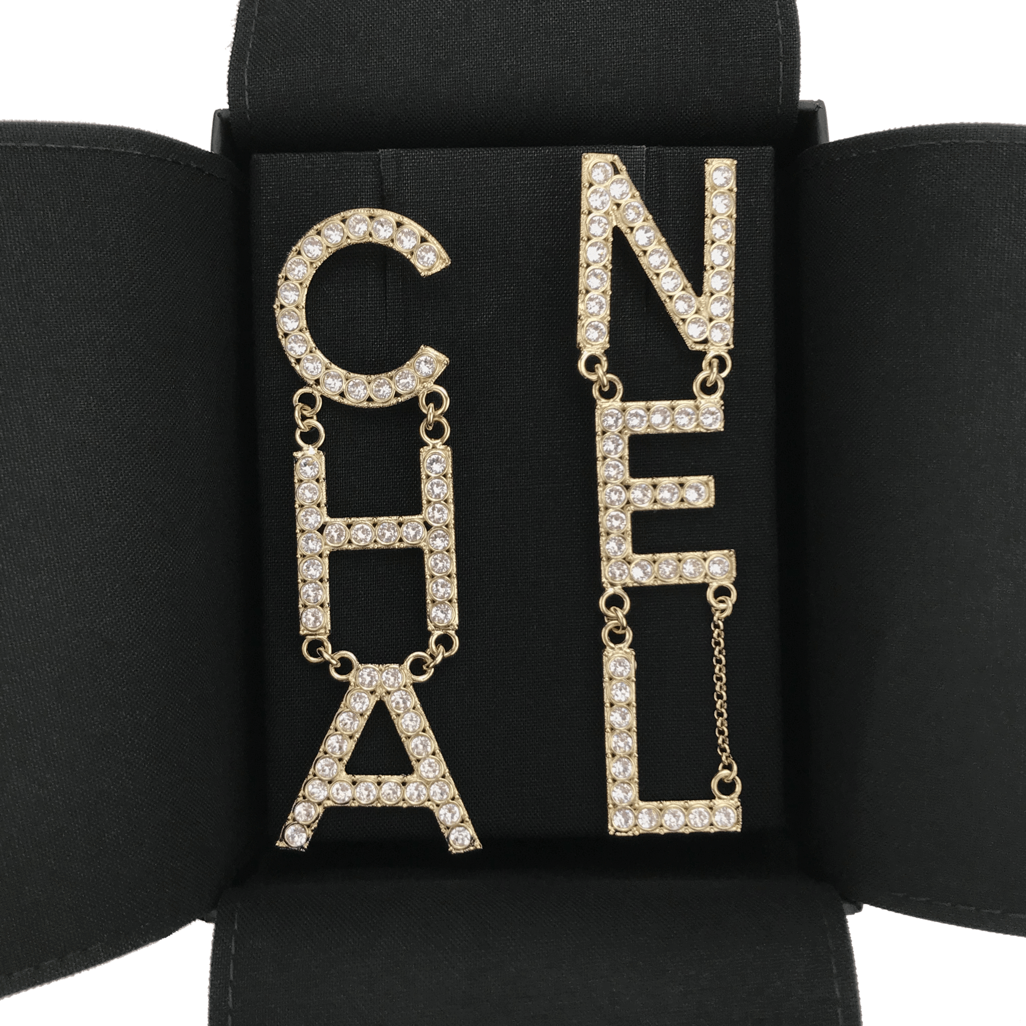A major statement piece to dress up any outfit and stand out looking like a style QUEEN.Gold metal and crystal diamonte CHANEL earrings of the Spring 2019 runway collection.-For pierced ears.*Please note: to hire these earrings, I will require ID and address verification.After booking online, please message a photo of your driver's licence or ID card AND a photo of a recent utility bill, statement from a bank or letter from a government institution.