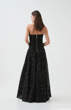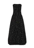 The Aje Juniper Gown is a striking statement piece that perfectly blends elegance and modern artistry. Designed with a strapless silhouette and straight neckline, the gown features a ruched pearl-beaded tulle overlay that adds a touch of texture and opulence to the bodice. A draped full skirt cascades beautifully with an asymmetrical bubble hem and front leg split, creating fluid movement with every step. Finished with an external back zipper and sculptural puller, this lined gown captures timeless femininity with a contemporary edge an unforgettable choice for special occasions.