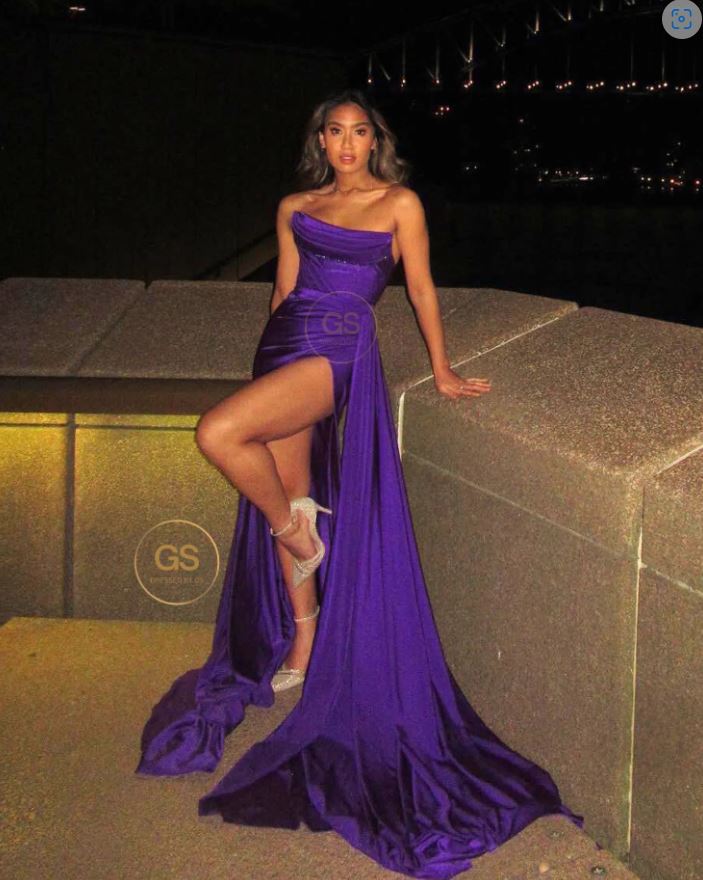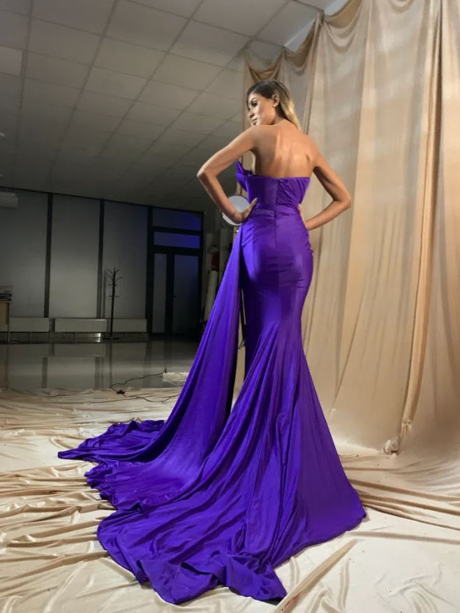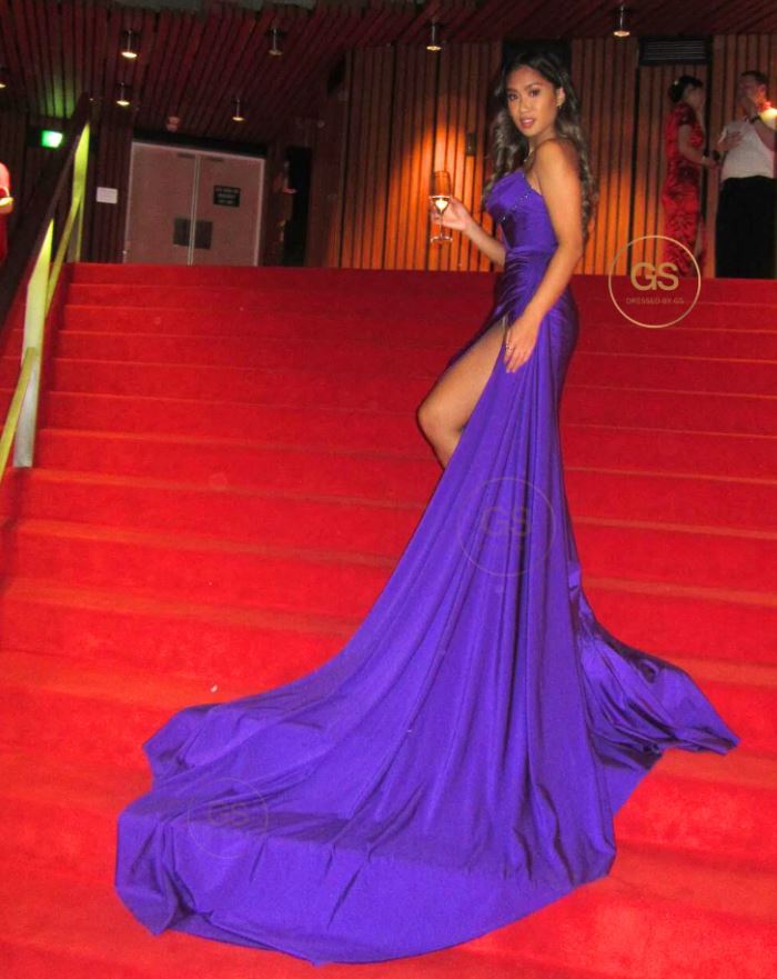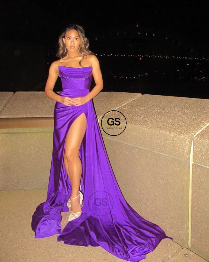 Showstopper Albina Dyla Femme Lilac Corset Dress is crafted from premium stretch fabrication, a ruched scoop neckline, corset bodice, thigh-high split and train, this floor sweeping gown is worthy of the red carpet! Embellished with Swarovski crystals across bust.Dry cleaning is included in the hire.*This dress is in excellent condition.