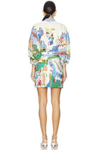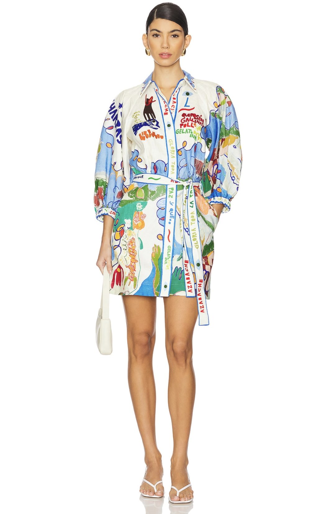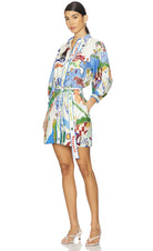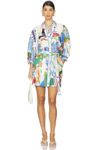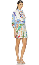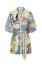 Experience elegance and artistry with our Nadia Mini Shirtdress. This stunning piece features artwork in collaboration with Nadia Hernandez, bringing a touch of exclusivity. The straight mini silhouette is accentuated by a point collar, tucks on the sleeves, and a self-tie belt for a flattering fit. With a concealed placket and in-seam pockets, this dress combines style and functionality.