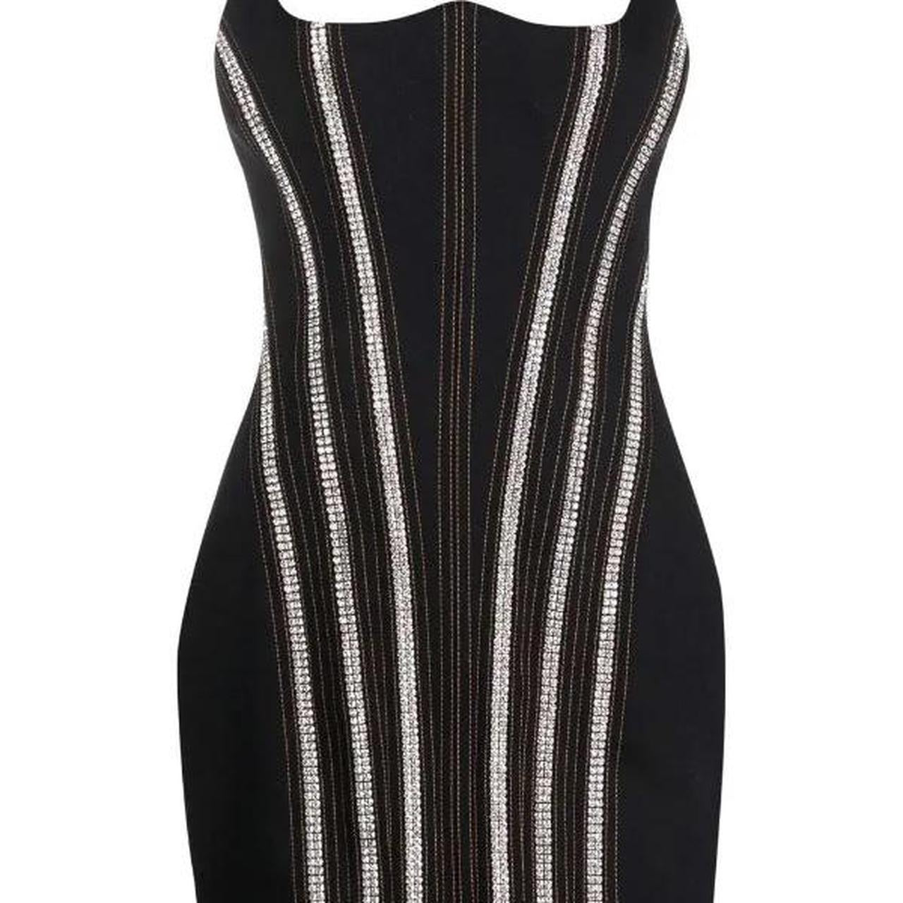 <p>corset crystal-embellished mini dress</p><p>In true Area fashion, this short dress is decorated with sparkling crystal embellishments. The crystals form vertical lines to accentuate the fitted silhouette of the corset-inspired design.</p><p>Highlights black virgin wool-blend crystal embellishment sweetheart neck adjustable spaghetti straps exposed rear zip fastening thigh-length&nbsp;</p>