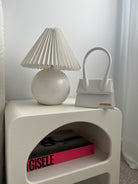 White top handle leather bag with strap. Gold hardware and magnetic closure. 18 x 13.5 cm