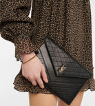 Saint Laurent Jolie Leather Clutch Black, Small gold chain. Lambs Leather
