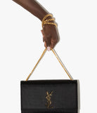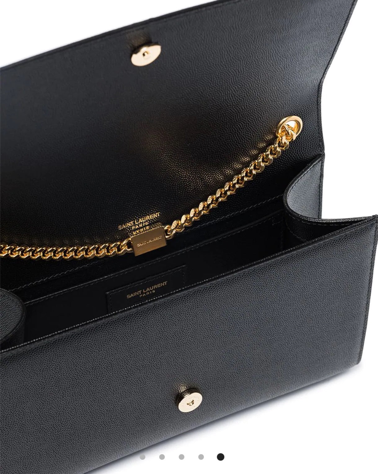 Did you know this Kate shoulder bag from Saint Laurent was named after Catherine, the Duchess of Cambridge? Kidding. But it is worthy of royals, though. Featuring gold-tone hardware, a foldover top, a chain shoulder strap and YSL initials to the front.Made in ItalyCompositionCalf Leather 100%, Brass 100%