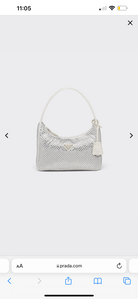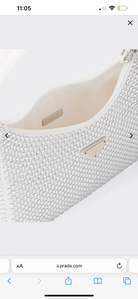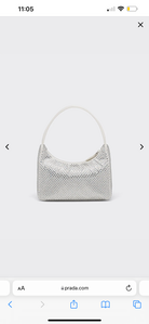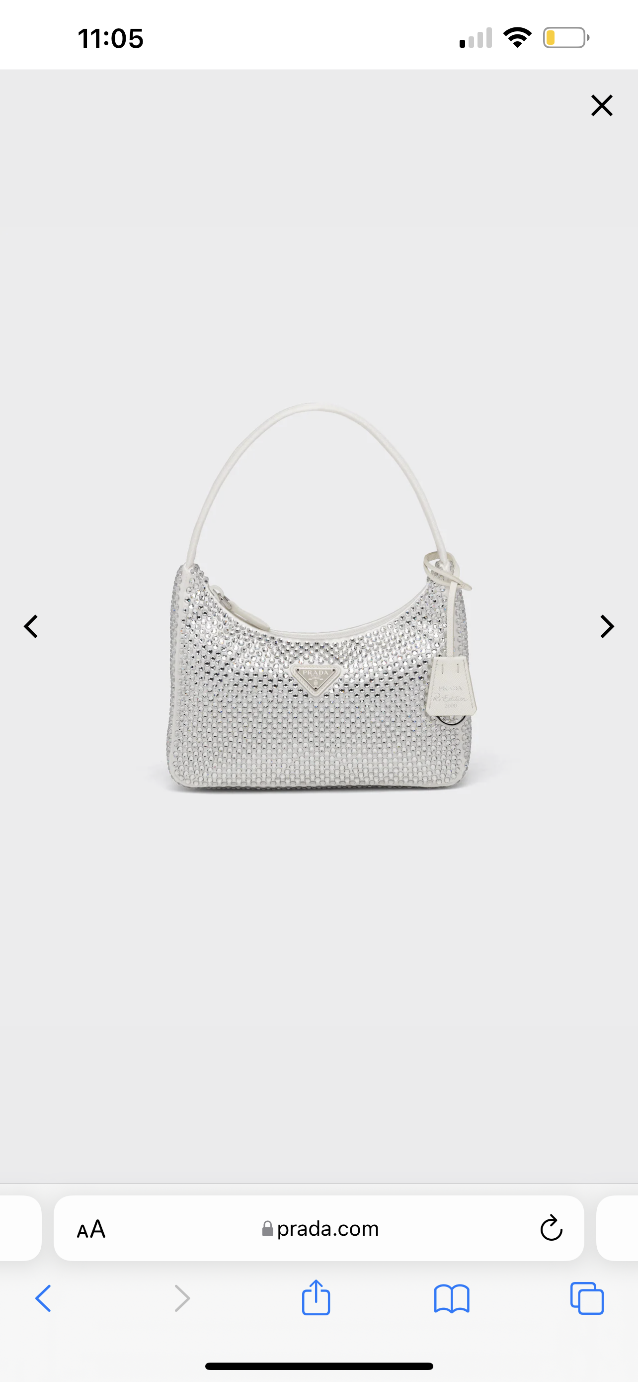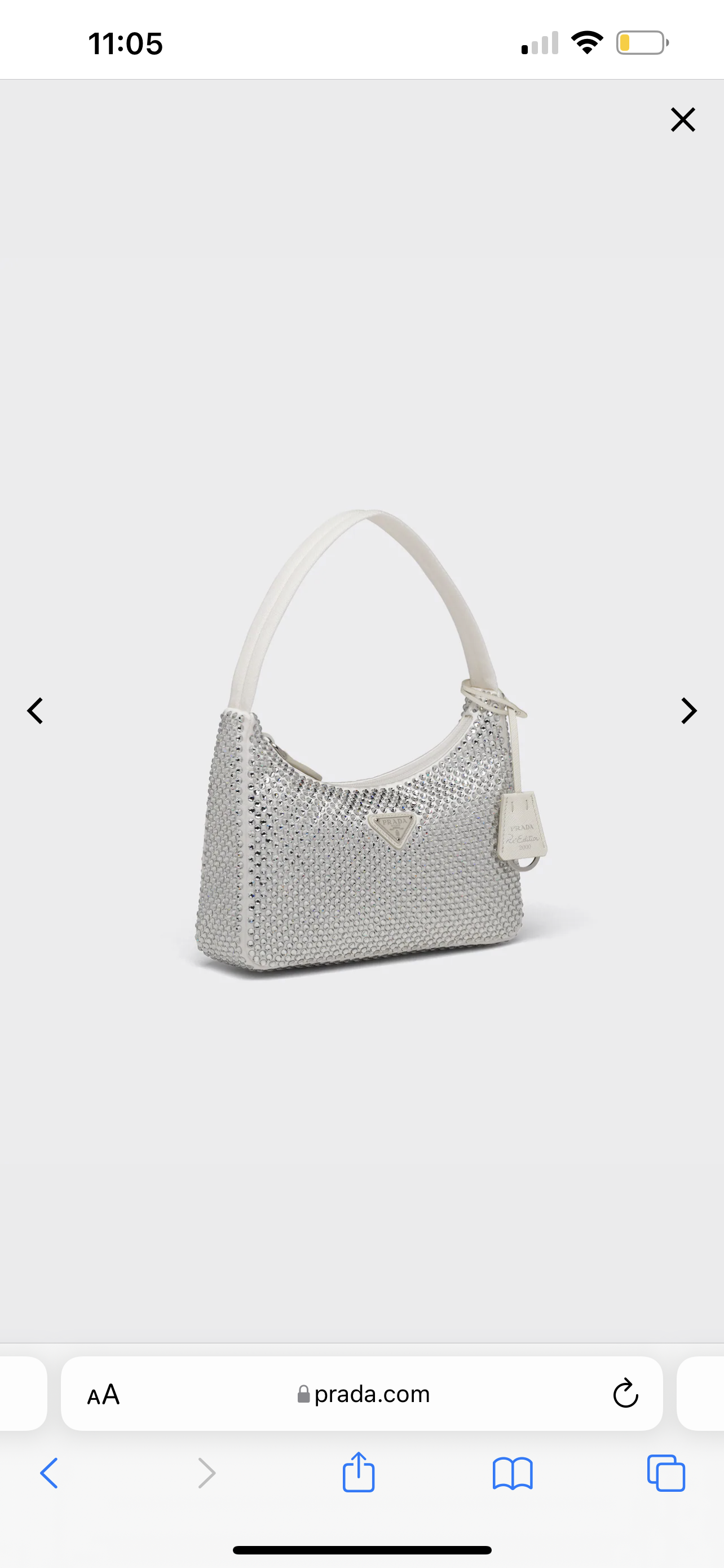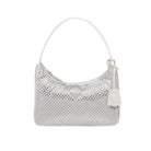 This mini hobo bag, an iconic Prada style, comes in a luxurious satin version studded with crystals and decorated with the emblematic enamel triangle logo.