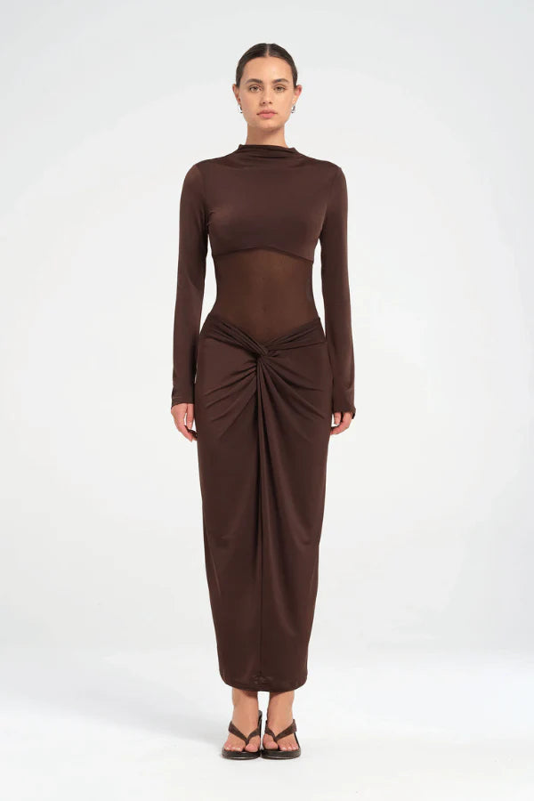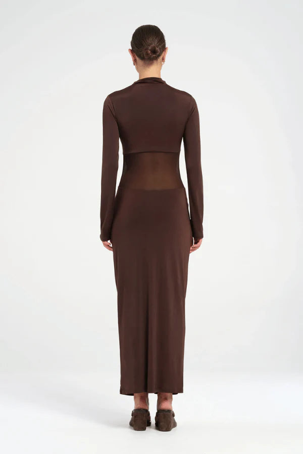 Benni long sleeve maxi dress in chocolate