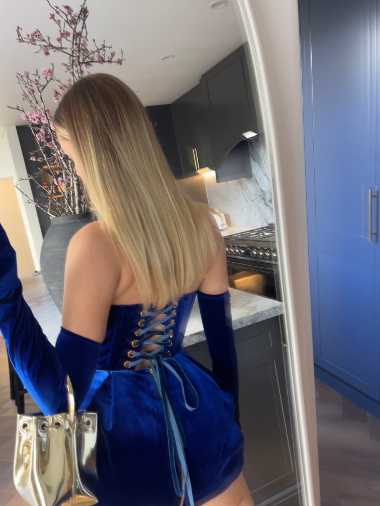 Maraya Velvet Mini Dress in Indigo Bronx and Banco