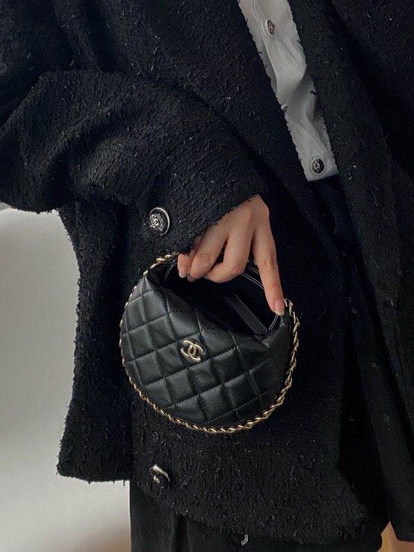 Chanel Halfmoon Quilted Hobo Lambskin Black