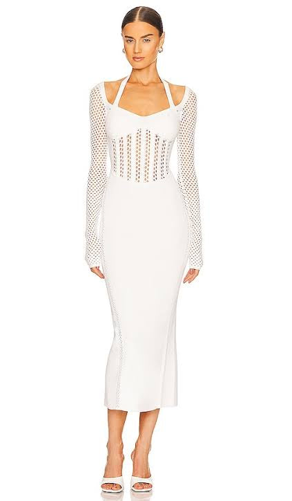 Dion Lee Column Corset Dress in Ivory. - size S (also in L, M, XS) Dion Lee Column Corset Dress in Ivory. - size S (also in L, M, XS) 71% viscose 27% nylon 2% elastane. Made in China. Dry clean only. Hidden back zipper closure. Unlined. Halterneck S-hook detailBoned front with open knit fabric.