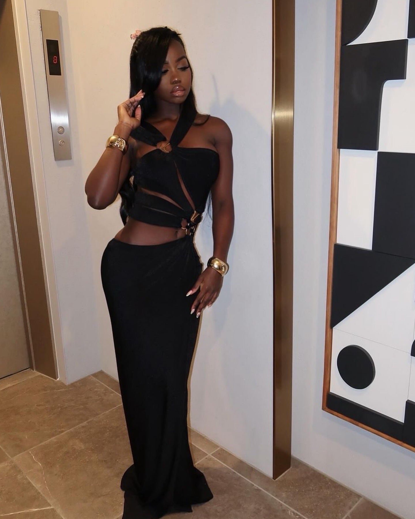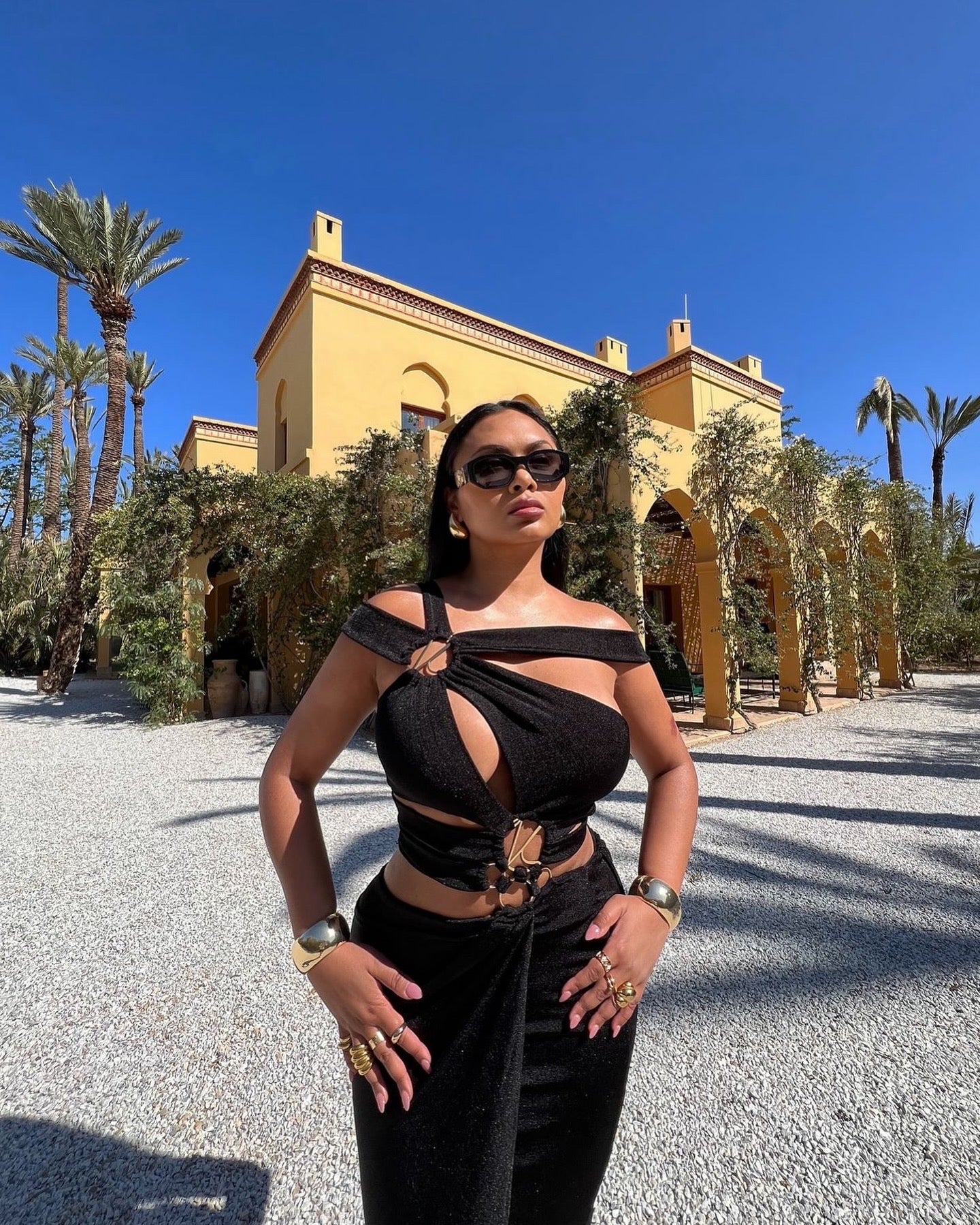 THIS ONES A TEAM KHANUM'S FAVOURITE. THE CUT, THE COLOUR, THE DETAILING? THIS KIYREN DRESS IS SURE TO MAKE A STATEMENT WHEREVER AND HOWEVER YOU CHOOSE TO WEAR IT. CUT FROM SLINKY TEXTURED JERSEY WITH STRAPPY DETAILS, IT'S DETAILED WITH OUR KHANUM'S GOLD K BUCKLE. STYLE YOURS WITH BOLD GOLD ACCESSORIES TO FINISH THE LOOK. WEAR WITH WARNING: HEADS WILL TURN AND JAWS WILL DROP.
