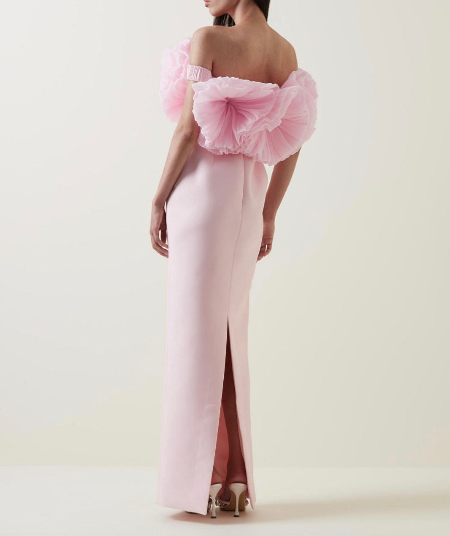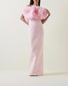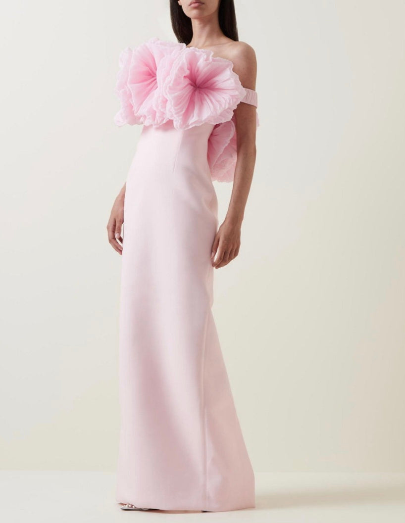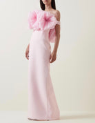 Designed for the boldly feminine, the Angelo Gown features a floral inspired sculptural bust detail, falling to a fall grazing length with back split detail.