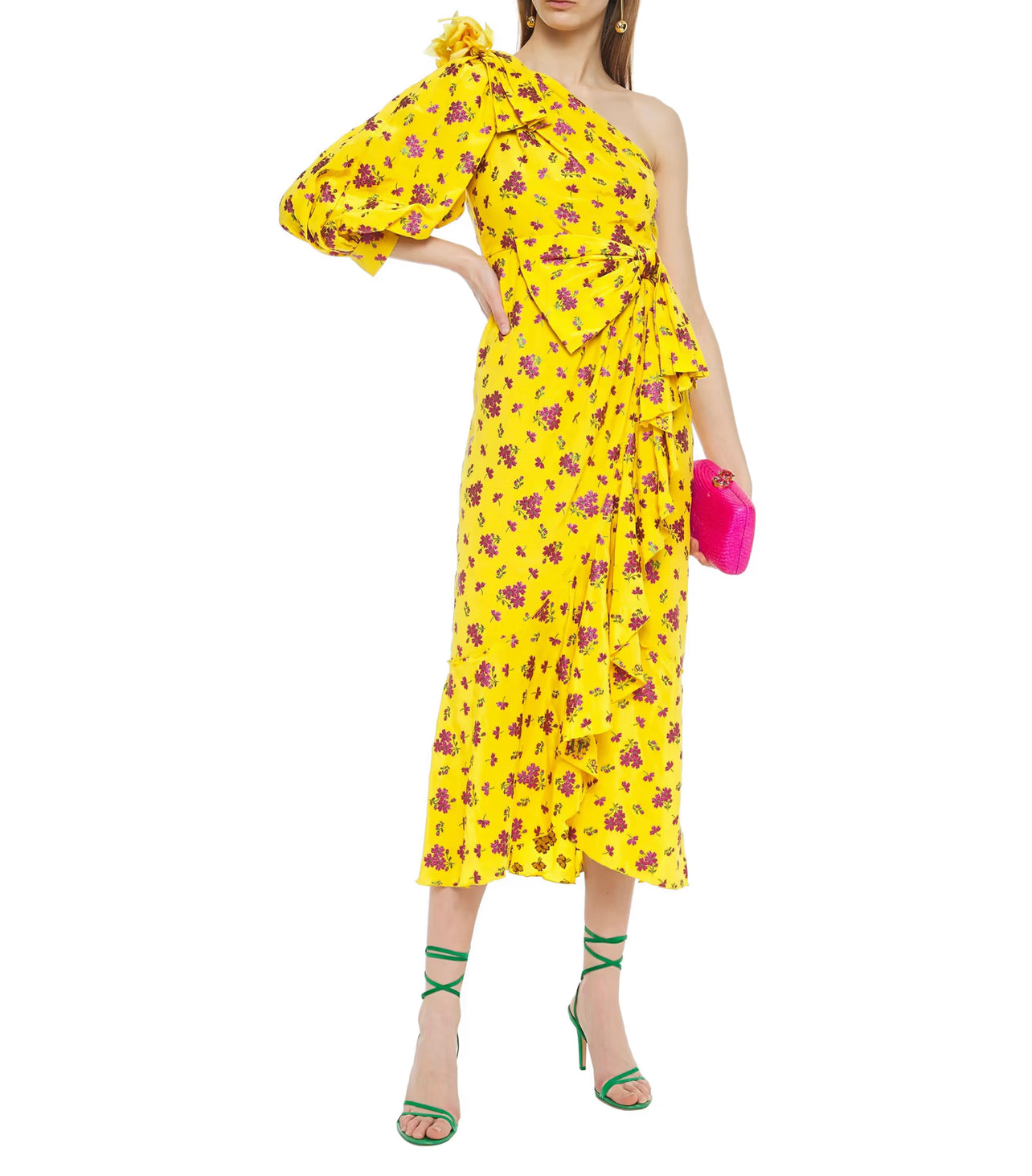 One-shoulder embellished metallic fil coupé silk-blend midi dress.