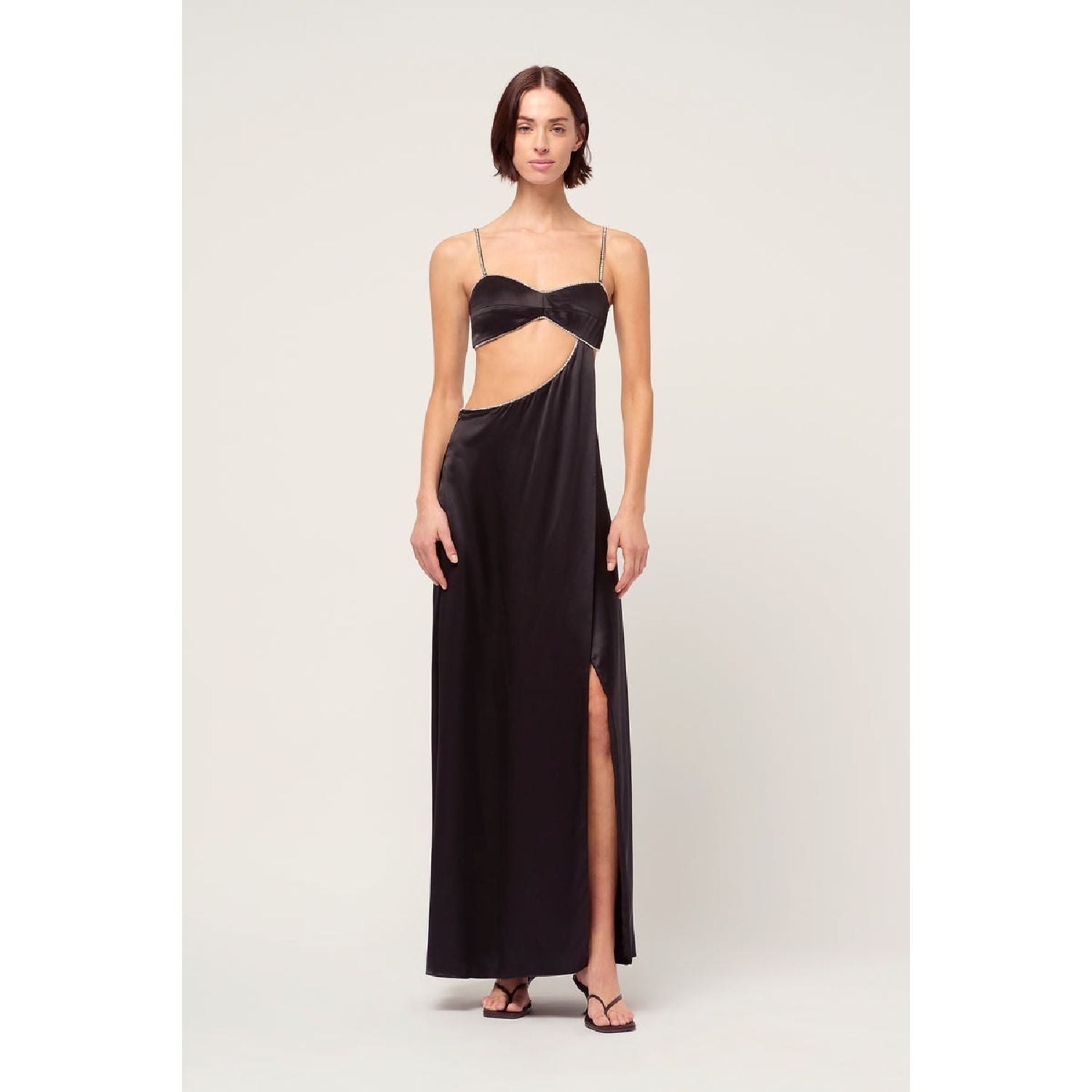 Sold out dress! Michael Lo Sordo has a knack for draping fabrics in a such a flattering way - seeing how the materials move is an important step in his design process. This 'Symic' gown is cut from lustrous silk-satin and features skin-baring cutouts at the waist and crystal-encrusted trim around the bust and waist. PRODUCT INFORMATION 100% Silk Satin Ties at the back for an adjustable fit Slips on Dry Clean Only Made in AustraliaFits true to size, take your normal size bias cut, designed for a slim fit Ties and clasp fastening at back, concealed zip fastening along side Lightweight, fluid, non-stretchy fabric