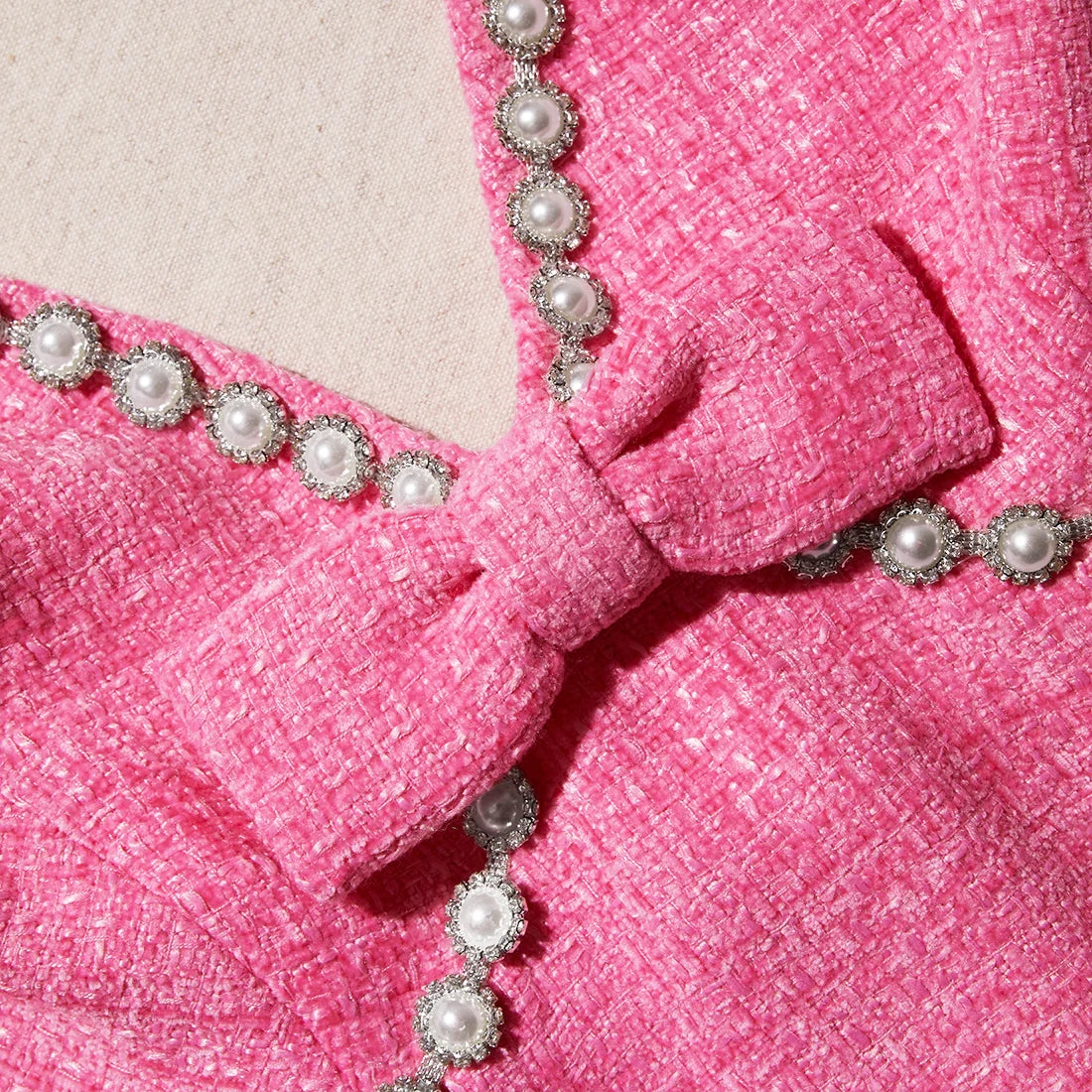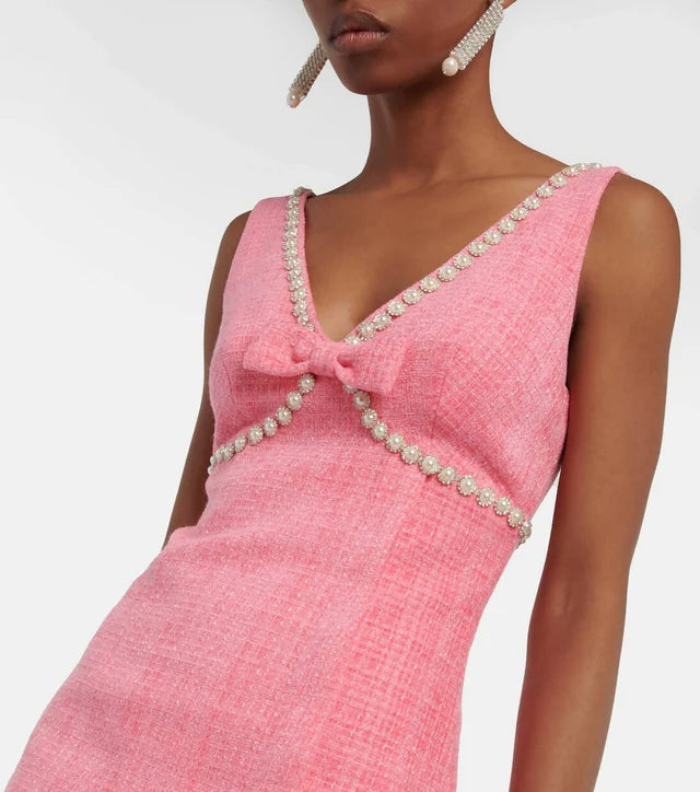 Self portrait bow embellished miniAU size 8 (international small) runs slightly up, would fit 8 or small 10.RRP AED $2050Tweed material with embellishment details, v neck and modest slit at side. Zip up.Perfect birthday dress or hens outfitCurrent season, sold out style