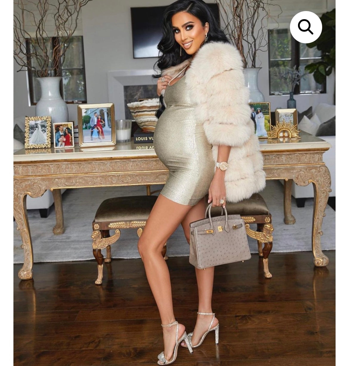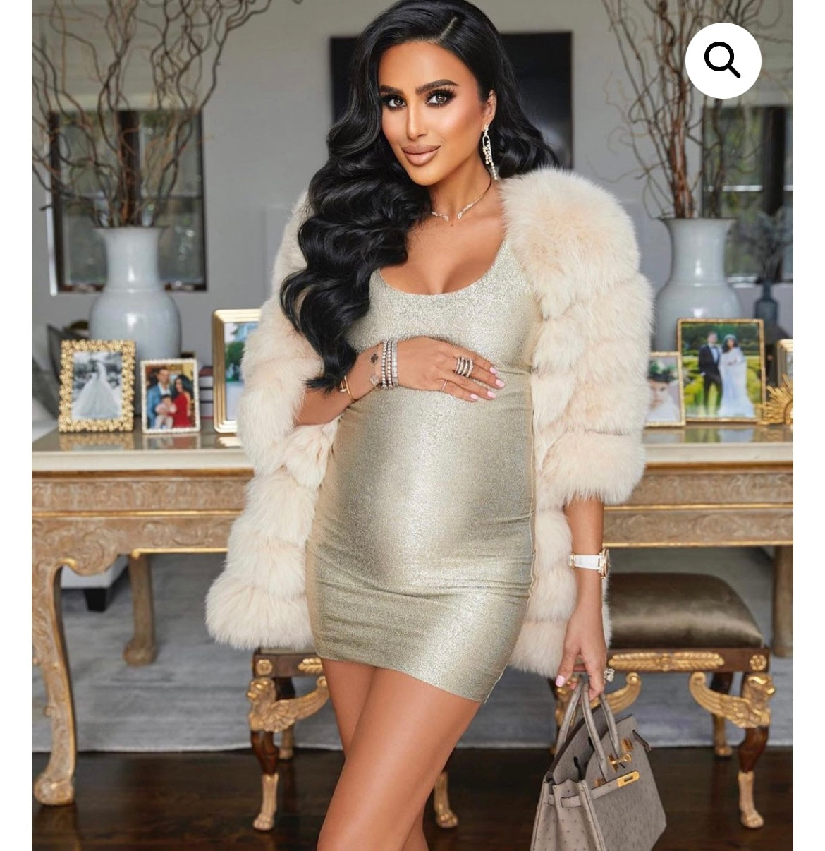 As seen on Lilly Ghalichi wearing size XS○ Model is wearing colour “Nude”○ 100% fox fur○ Length 60cm○ Hook button for front closure