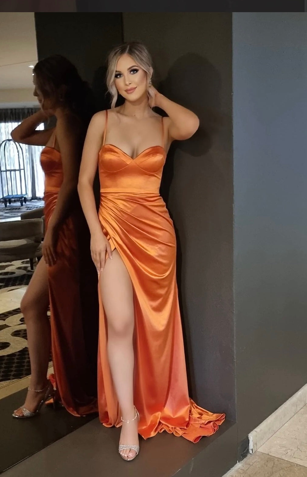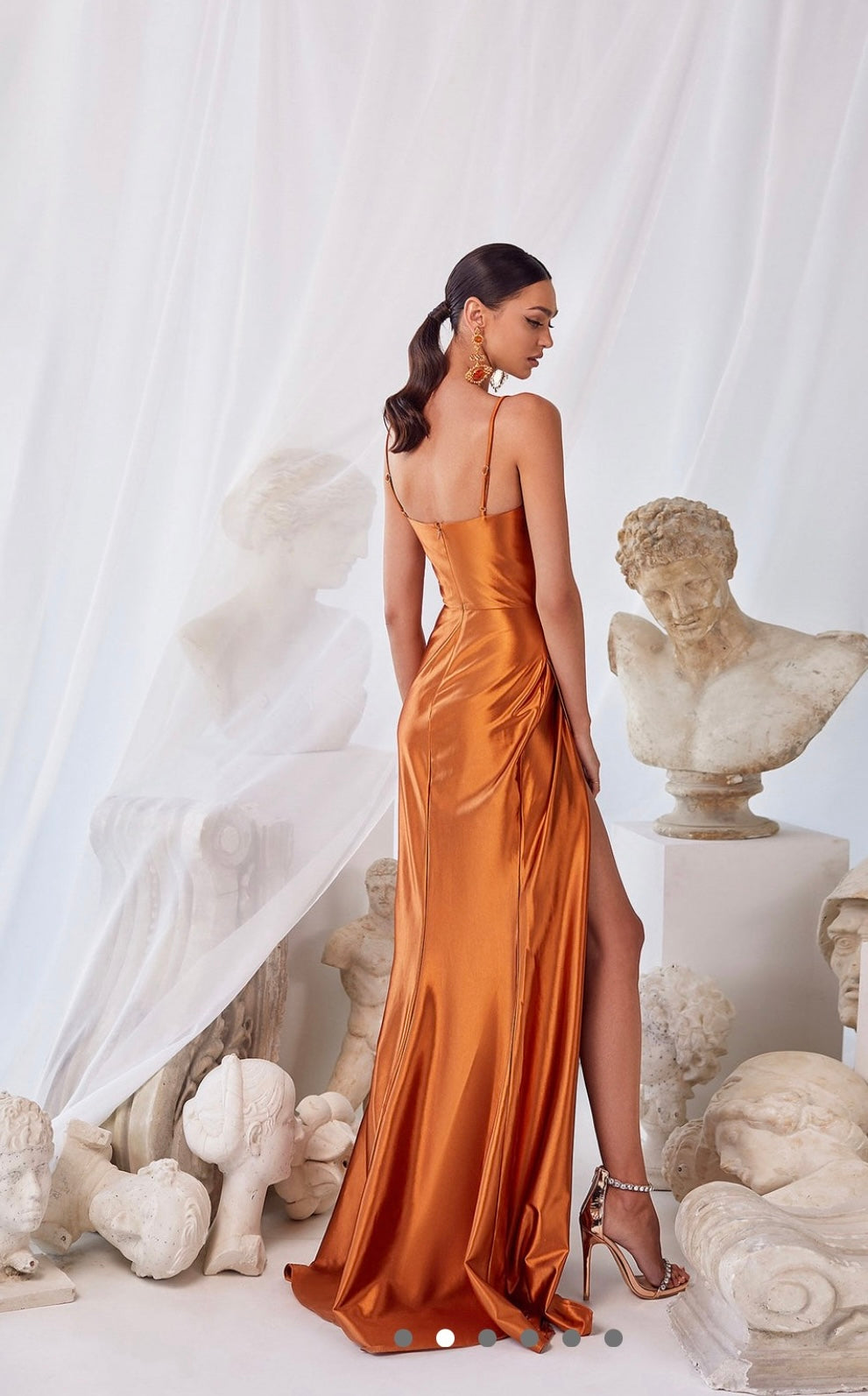 The Aliita Tansie gown features a daring split, luxe silk fabric and a flattering side piece.
