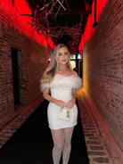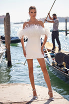 Emanating an maximalist appeal, the Audrina Dress embodies a heightened sense of sophistication and style. This garment features a feathered trim neckline, complimented by gracefully designed off-shoulder sleeves. For a touch of allure and versatility, the dress comes with detachable jersey gloves. Its silhouette, sculpted from luxurious scuba fabric, accentuates every curve with a fitted design.