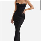Charmaine' is just the epitome of elegance and class, made from our lustrous silk satin in a timeless black and cut on the bias to gently skim your figure. It has a beautifully draped cowl neckline and the bodice features our incredible corsetry boning to cinch the figure in.The pretty half cups are softly lined and underwired for full support and uplift, framed by delicate shoulder straps that adjust for the perfect fit.Has been hemmed to suit height on 165cm.Waist to floor is 110cm