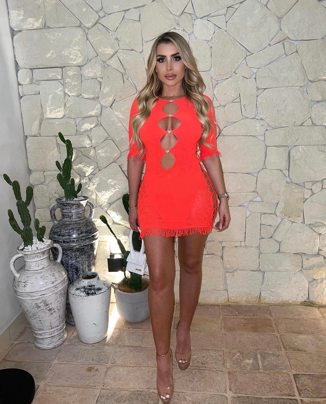 The dress is one size and fits most (Uk 6-10).This Spring summer 2022 Miranda version adds a hint of romance with rose vine lace detailing and updated crystal hearts with prismatic glimmers.POSTER GIRL’s shapewear category is designed to suction you in all the right places, releasing and supporting your natural curves where needed.