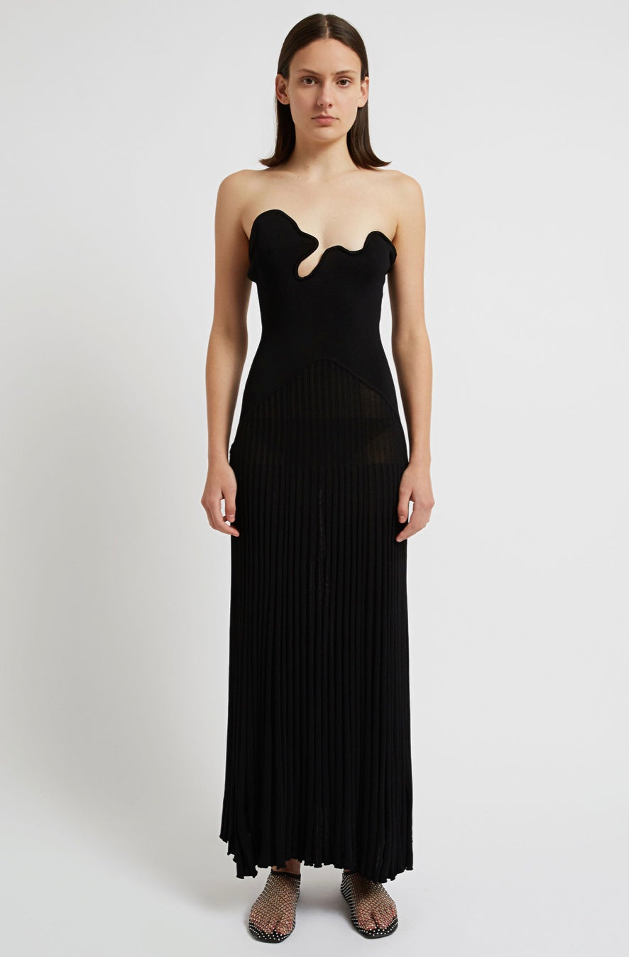 Size M- 8-10 Christopher Esber dress from their new collection. Stunning style, creating a corset look around the top to fall into the pleated skirt below. Thick stretchy material not see through.