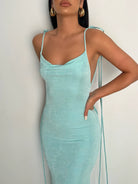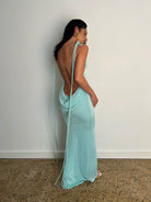 If you like to stand out, the CRISTINA gown is for you! Classic & timeless, this gorgeous piece features MÉLANI’S signature back drape. Designed to make a statement, the gown is perfect for your upcoming spring/summer events.Front of gown is designed to sit above heels so you can walk with ease. Gown has a slight train back.Further features:Ultra low back drapeFully linedAmple stretch fabricElongated strings that you can cut to your desired length.Elongated strings can also be worn multiple waysAsymmetrical hem