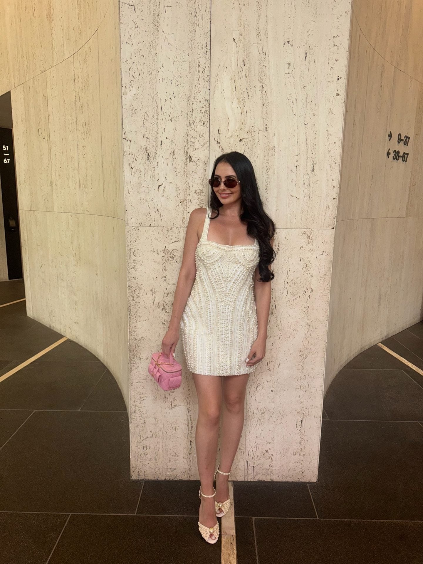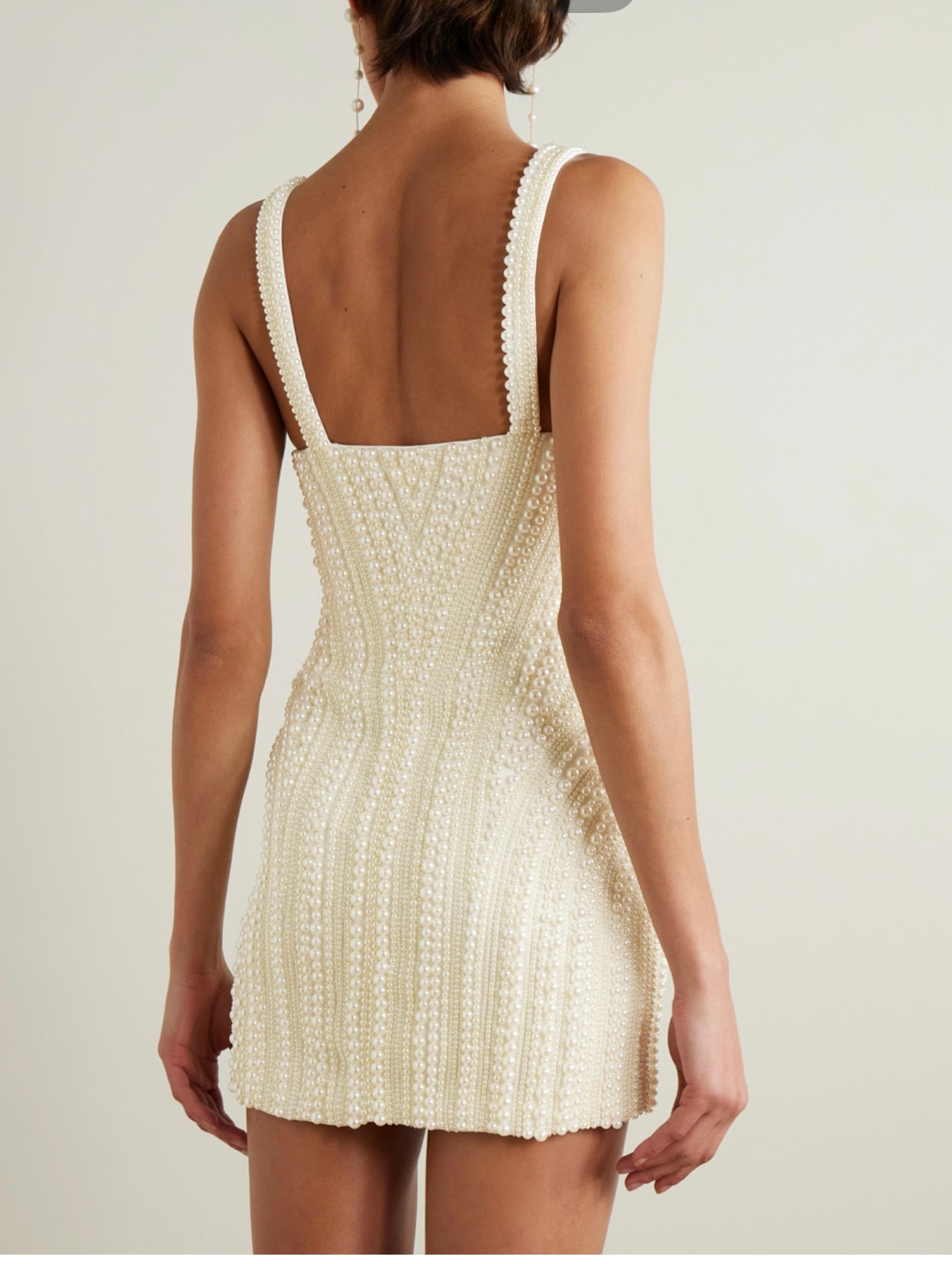 Retrofête's 'Elaina' dress is covered with lustrous faux pearls, intricately applied by hand to highlight your natural curves. Made from crepe for a close fit, it has a sweetheart neckline and nipped-in waist.