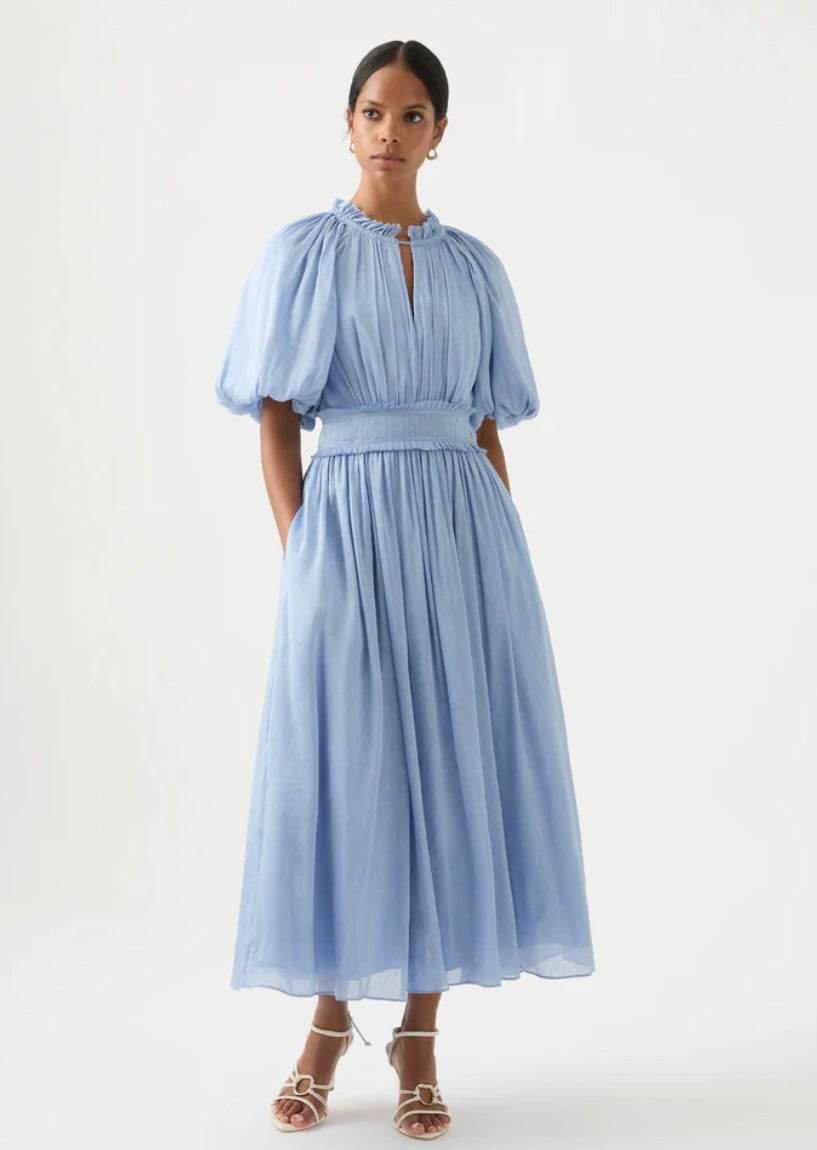 Elysium Blouson Midi Dress in Steel Blue Aje