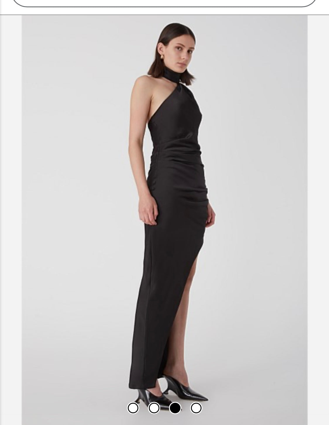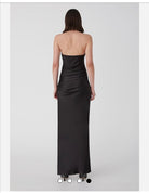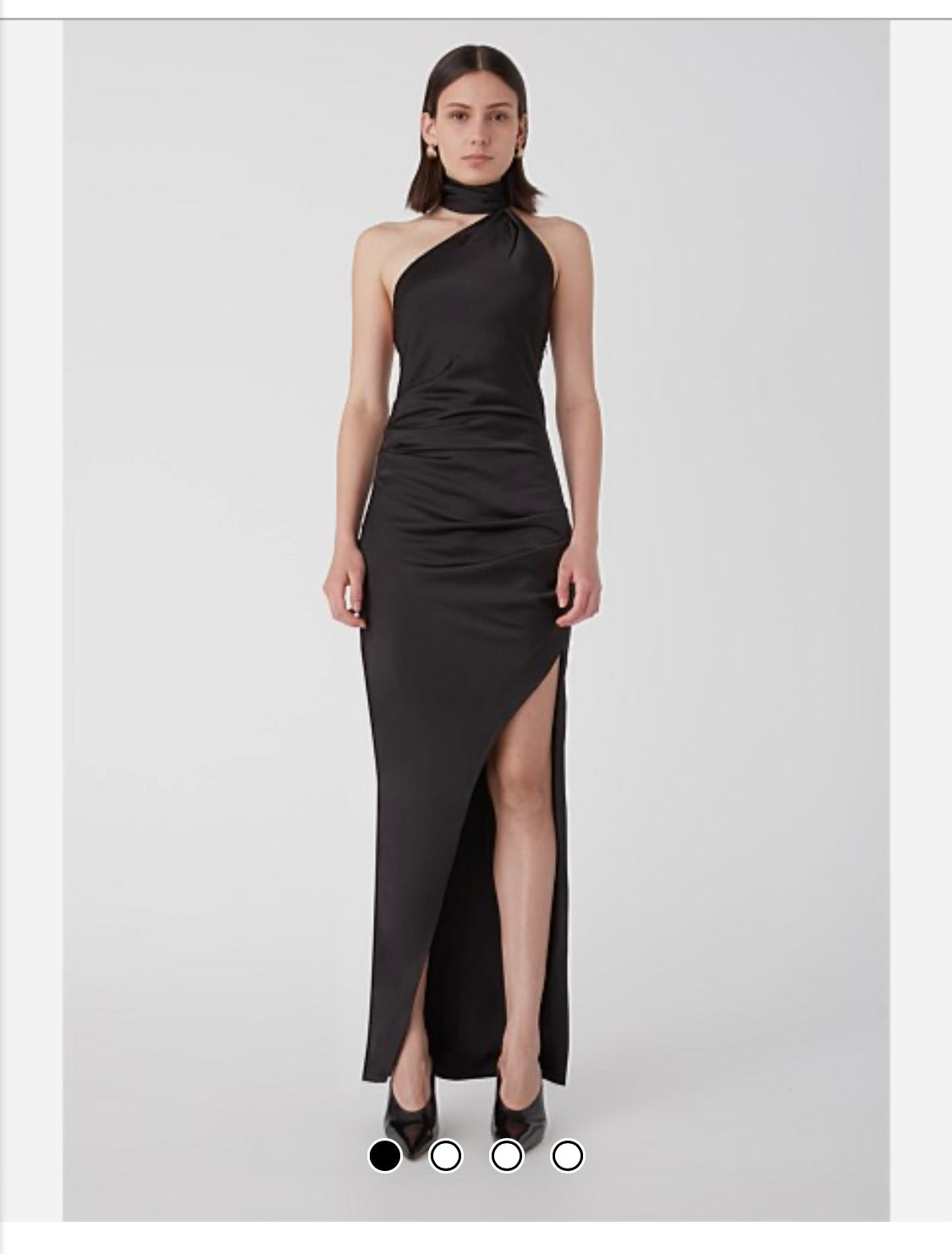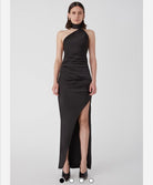 The Emma Satin Gown features an asymmetrical neckline adorned with a gathered collar, adding a touch of modern sophistication to the classic silhouette. For a comfortable fit, silicone tape lines the inner neckline, ensuring the dress stays in place with poise throughout the evening. The side invisible zipper provides easy access while maintaining a seamless and elegant finish.- Asymetrical neckline with gathered collar- Silicone tape on inner neckline- Straight skirt shape with split- Bias cut- Side invisible zipper- Fully lined- Gown length, 110cm from waistFabric Composition:100% POLYESTER