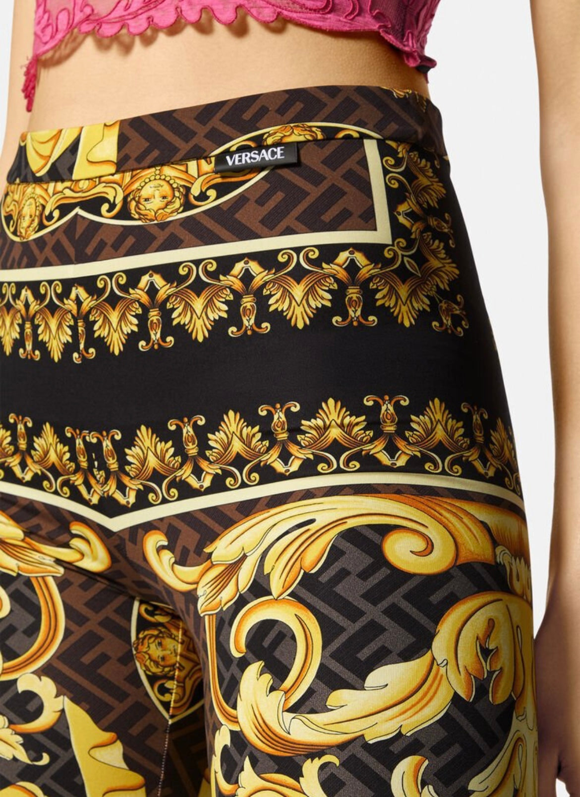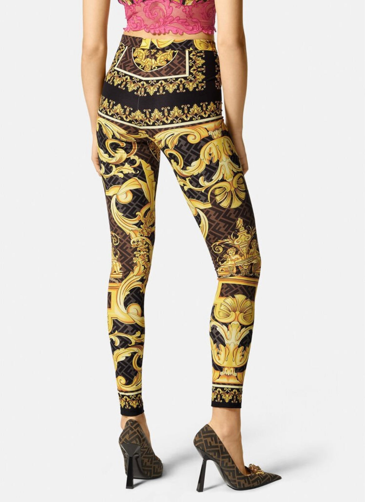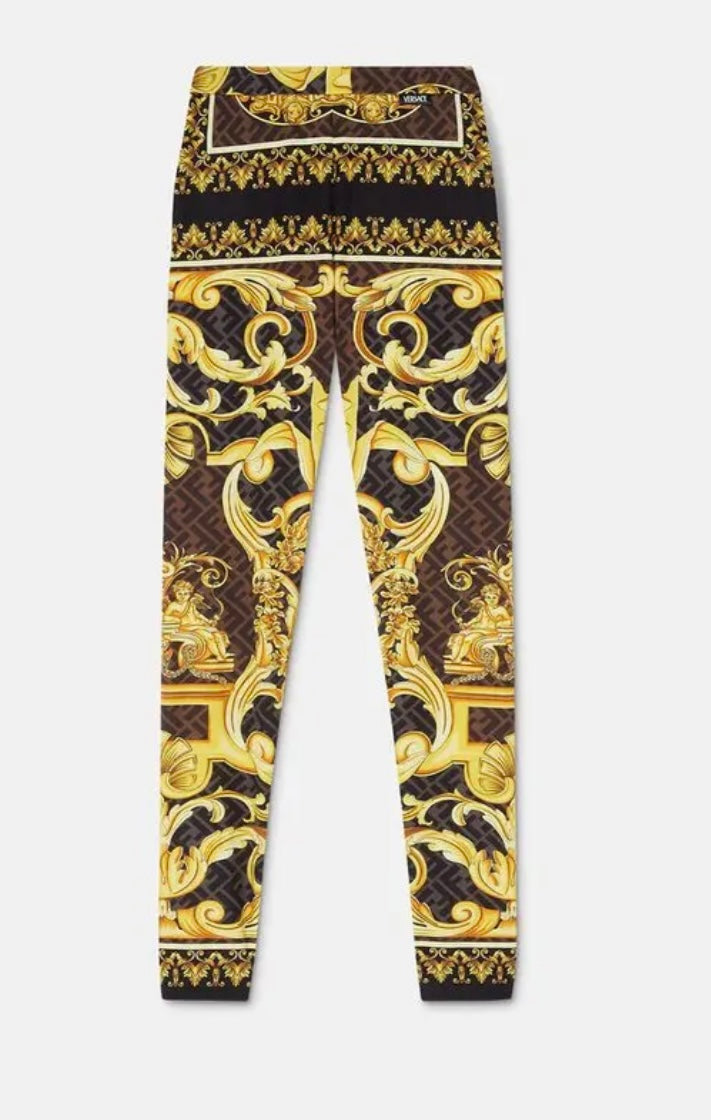 A swap of creative ideas between Kim Jones and Donatella Versace, these leggings are part of the latest Fendi by Versace capsule collection. With an elasticated waistband, it features the Fendace Gold Baroque print - Versace's Barocco motif overlapped with Fendi's monogram pattern.Size 38Will fit 6 to 10