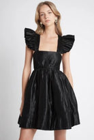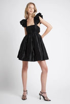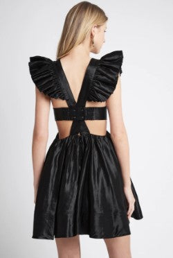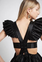 Fluttery shoulder straps and signature Aje cut out details are polished finishing touches to this statement look. Style with bold statement earrings for an evening occasion.PRODUCT DETAILSStraight square necklineCircular cut frills on strapsVoluminous skirtFitted bodiceRaw cut edgesSIZE AND FITModel wears a size 8/SModel: 178cm/5’10Bust: 76cmWaist: 57cmHips: 86cmFABRICATION69% Linen 31% Viscose