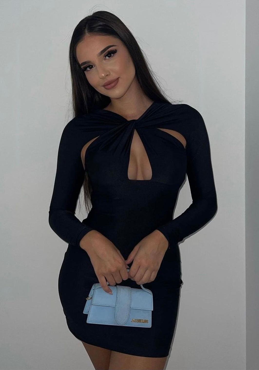 Size : XSStretch jerseyBodycon fit, stretchyCutout + twist necklineSlip over (no zip or tie up)