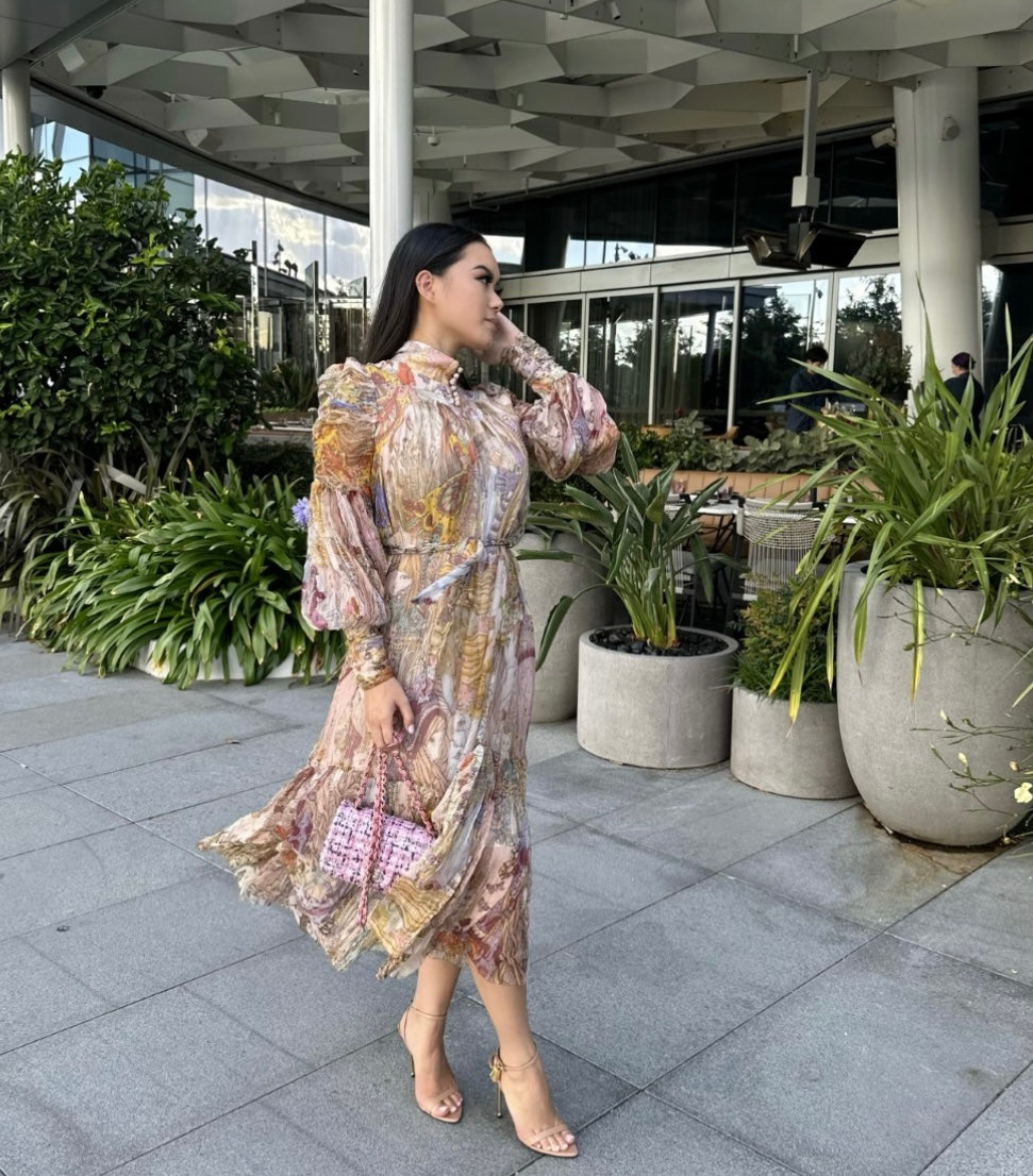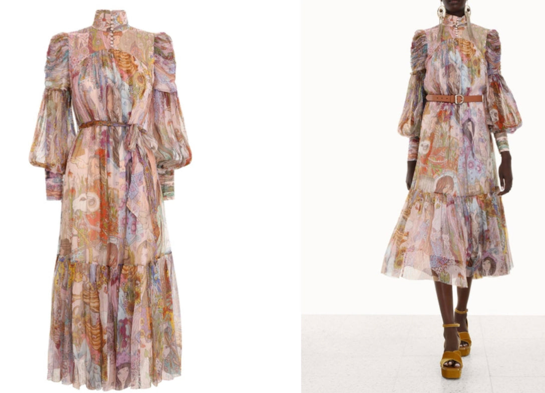 Zodiac Star Girls PrintSilk Midi DressSelf tie belt