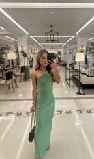 The finely ribbed pleats embrace your frame to accentuate the curves and lines of the female form. Featuring an updated ribbed pleating through the length of torso and a flattering chain halter that hugs the neckline.