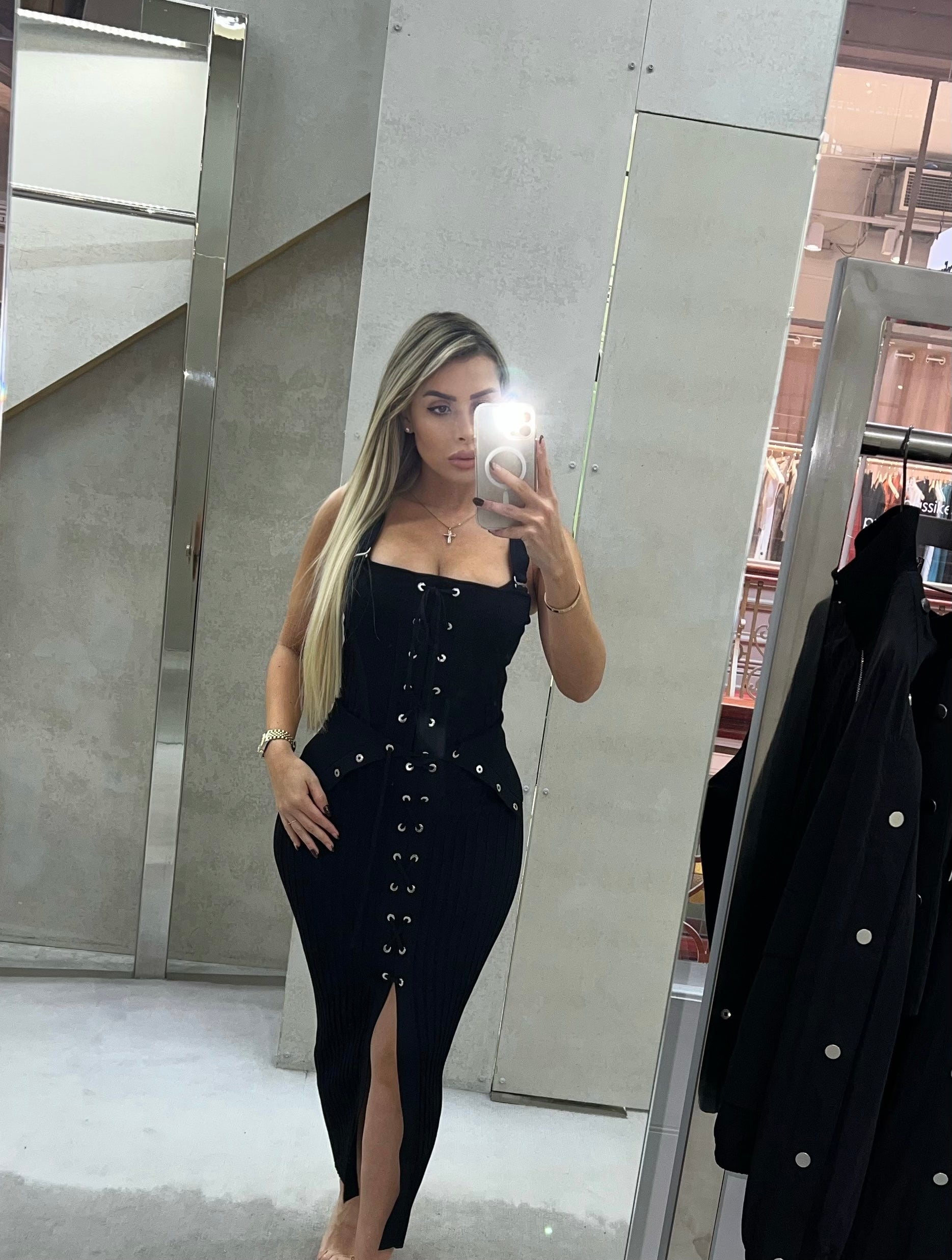 Sleeveless corset-style bodice top with laced front placket detail in a ribbed viscose-blend knit.Soft knit has natural stretch for a slim fit.True women’s sizing, take your normal sizeModel wears size S