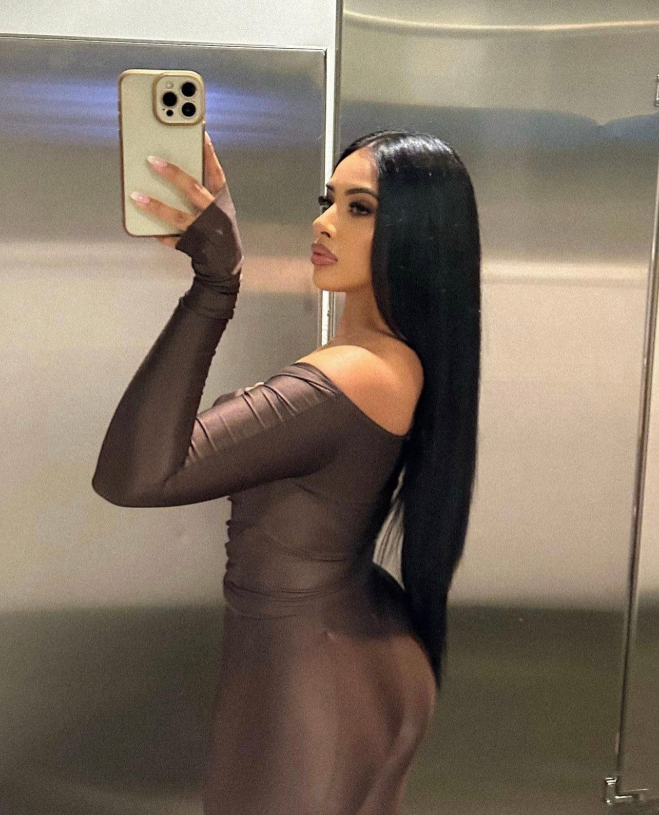 • Size xs but fits more of a 4-6Long-sleeved top in Chocolate. Constructed with seams down the arms in figure sucking spandex. Hey there tiny waist. This piece can be worn on or off the shoulder and pairs with the Lanai Leggings.Leggings in Chocolate with front pleat. Constructed with seams down the front and back in figure sucking spandex. Pair with the Lanai long-sleeved top for a seamless look.