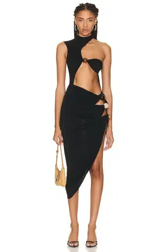 Turn heads on your night out with the Le Body Perola bodysuit from Jacquemus. The asymmetrical design is made from jersey, has a swimsuit-inspired front, and large pearl details on the hip and chest.