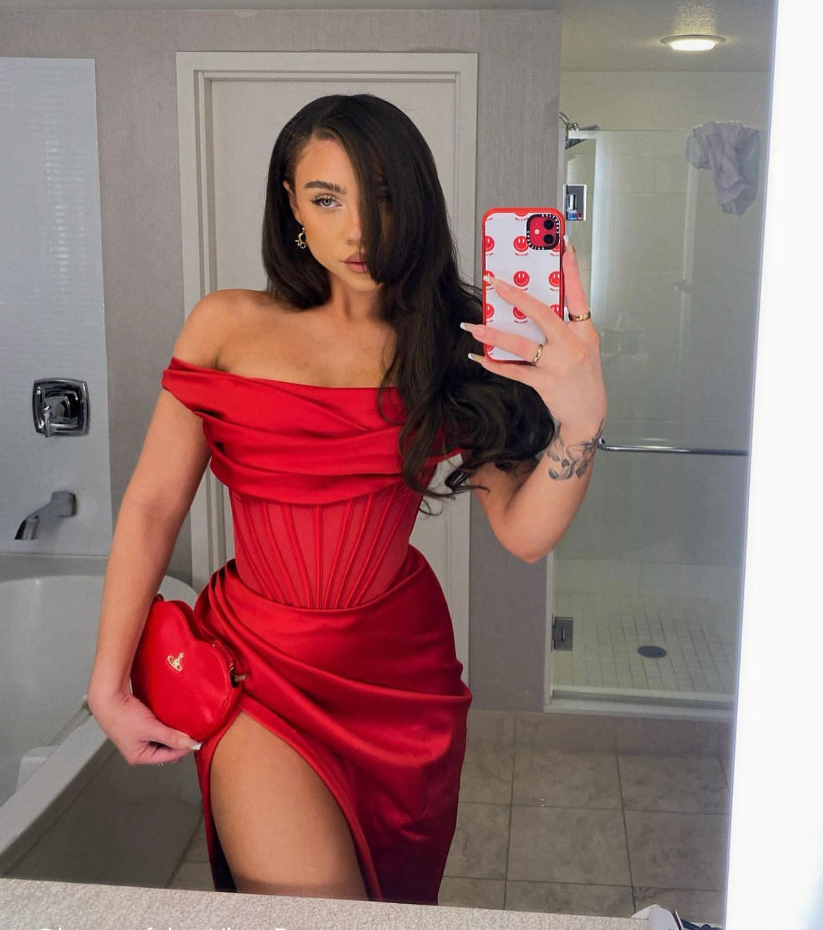 Red Asymmetrical Corset Midi Dress