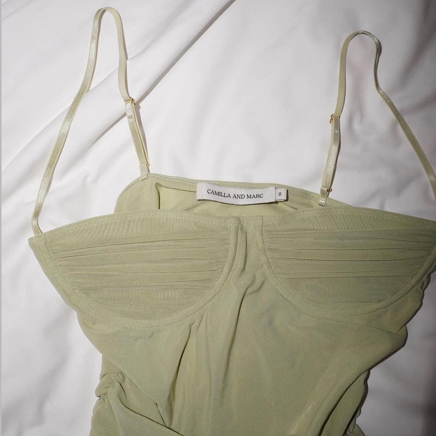 Size SLightweight, semi sheer mesh bodysuitSweetheart necklineAdjustable straps, button up at the bottomSkirt is made from premium fabric (size 8-10)Low rise skirt. button + hook & bar closurePockets on either side