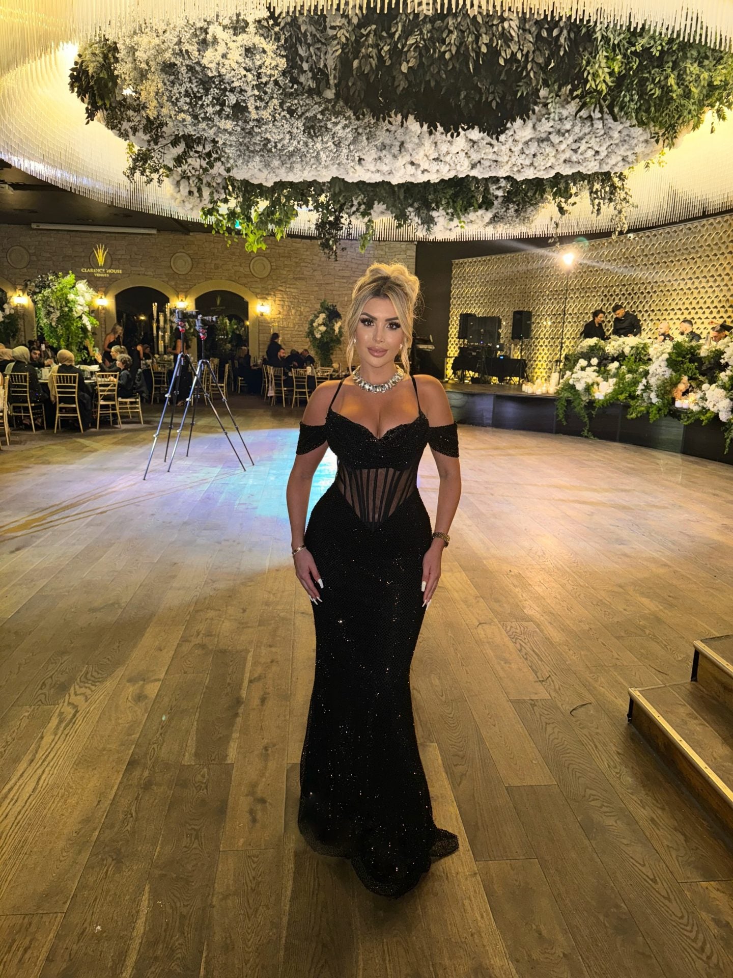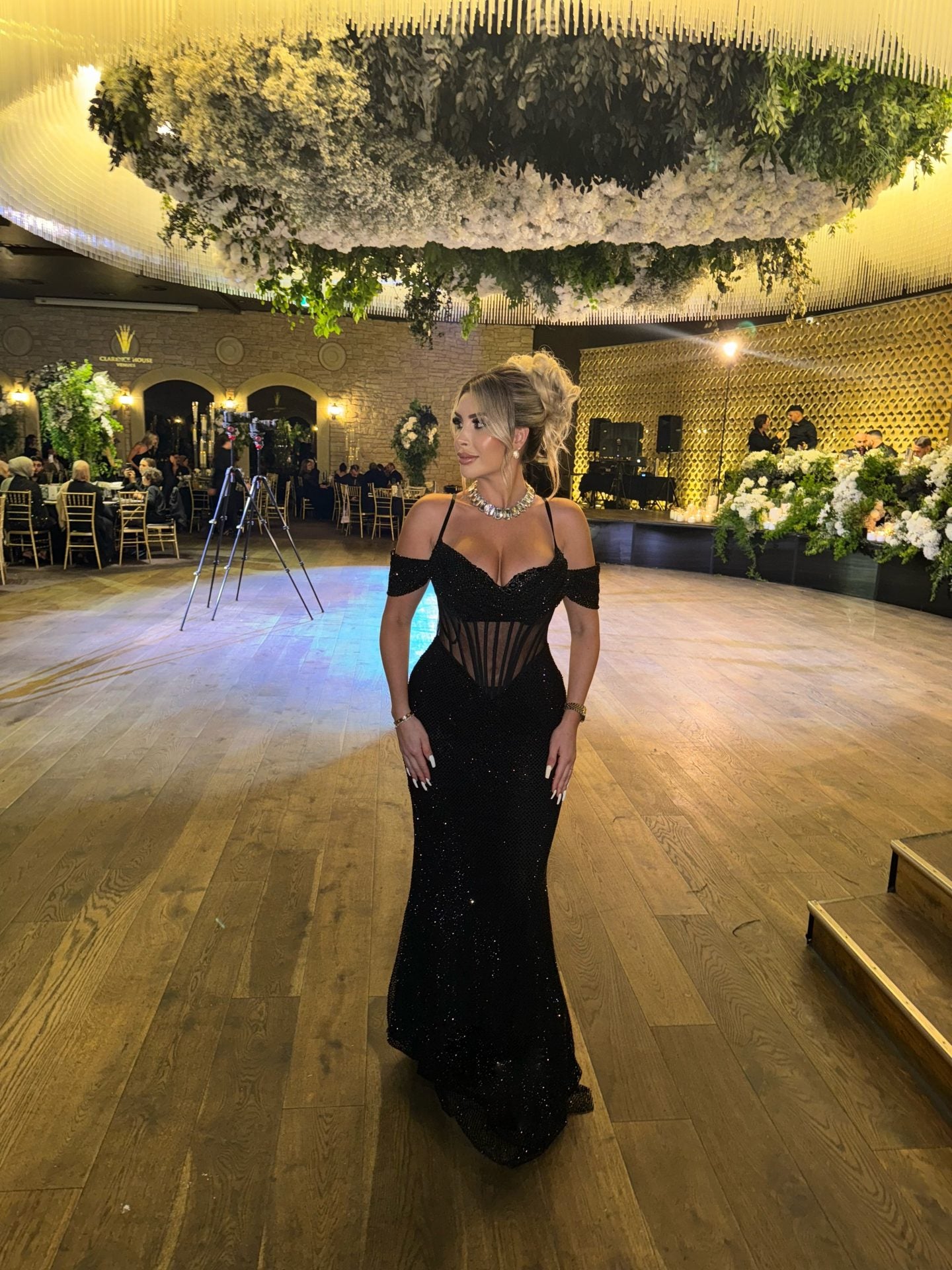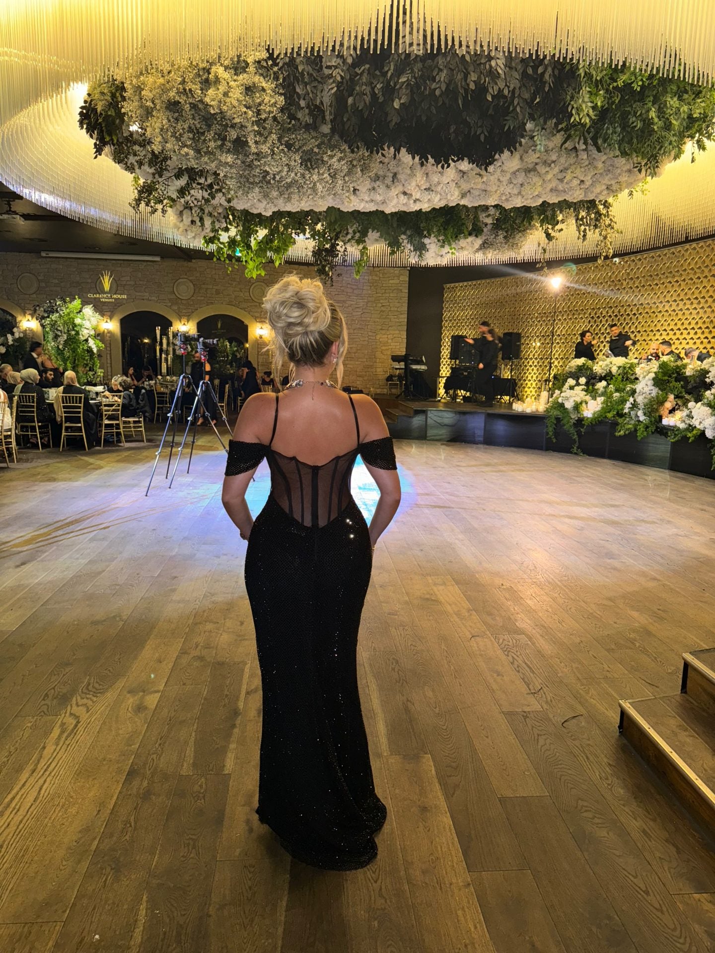 Size 6 USPORTIA AND SCARLETT PS24112 DRESS is the dress to make an entrance in. The off-shoulder, floor-length design features a touch of sparkle perfect for prom or any evening event. With the swish of this long dress as you walk in the room, you'll dazzle from the moment you arrive in this glamorous, yet oh so comfortable, gown.