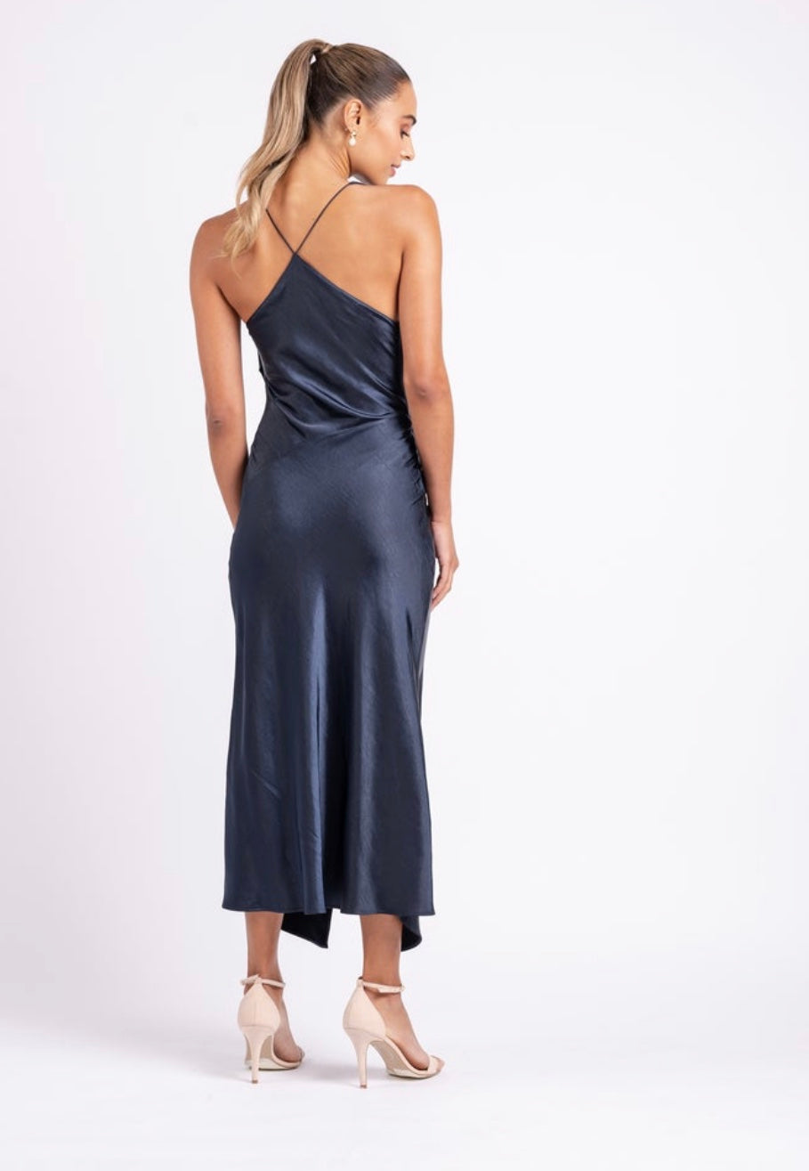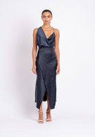 The Muse Dress is an elegant midi dress perfect for all of your occasions. Designed to flatter and enhance, the dress drapes and folds around the bust and cinches in at the slimmest part of the body for a flattering fit. The bias-cut skirt skims the hips and falls elegantly into a slight side split.