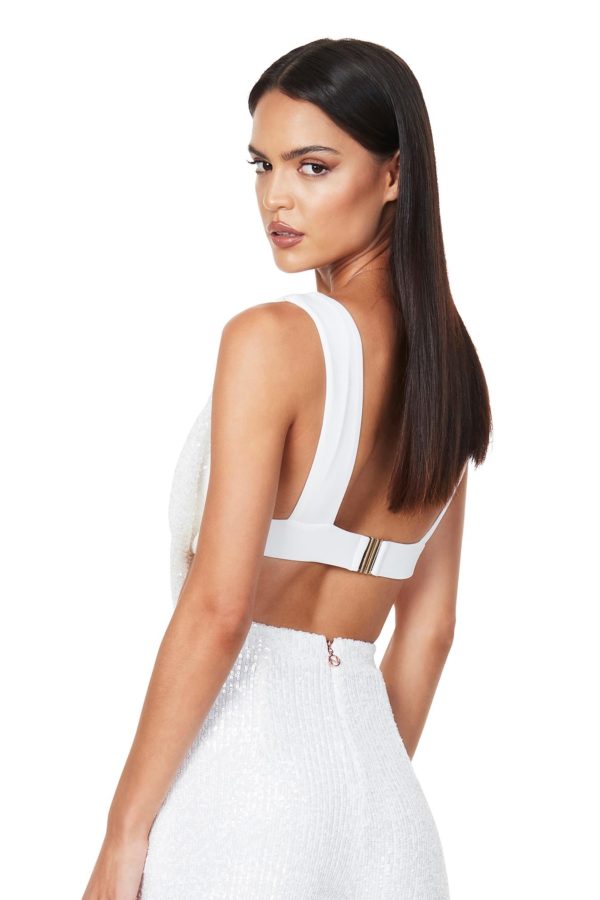 Fits true to size, couldn’t find a photo of the white pants so added one of the same outfit in the black pants. Although the complete set is white