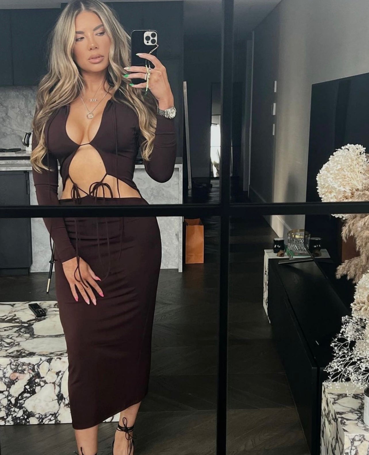 A luxurious Fitted long sleeve dress, with tie details and a slim arm.• Can be tied multiple ways• Fits xs - s