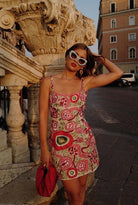 Gigi floral-embroidered mini from RACHEL GILBERT featuring multicolour, all-over floral embroidery, sequin embellishment, scoop neck, sleeveless, backless with a structured flared skirt. Gorgeous little mini.