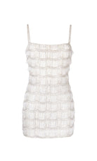 The Sadie Mini embodies structural design whilst embracing feminine form. This square neck style features internal boning to create shape and provide support through the bodice, and is adorned with hand placed beaded fringes throughout. This product has internal boning and has adjustable straps. The beaded tassel placement is unique on each garment as they are hand-placed & sewn.Style is a micro miniThis dress is heavy to wear