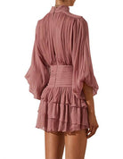OLYMPIA LONG SLEEVE RUCHED MINI DRESS