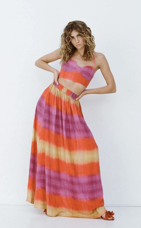 Ready for your next cocktail party, the Siesta Top and Maxi Skirt is the perfect summer set to take you from coffee to cocktails. Featuring in-built bust cups for support and shape the Top has elasticated shoulder straps for comfort and is easy wearing. The full gathered also features an elasticated wide waistband for a relaxed pull on fit, wear the Siesta Set for the perfect beach to bar outfit.