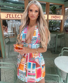 Introducing the St Lucia Dress, a captivating fusion of chic design and bold colour. Crafted in a mini length silhouette that effortlessly combines a flattering A line skirt finish and our signature Vacanza print. The St Lucia Dress is complete with a halter neck flowing into a corset that features front hook and eye fastenings, flattering the curves of the body and cinching in the waist. Make a statement with this enchanting style that effortlessly captures the essence of summer and sophistication.